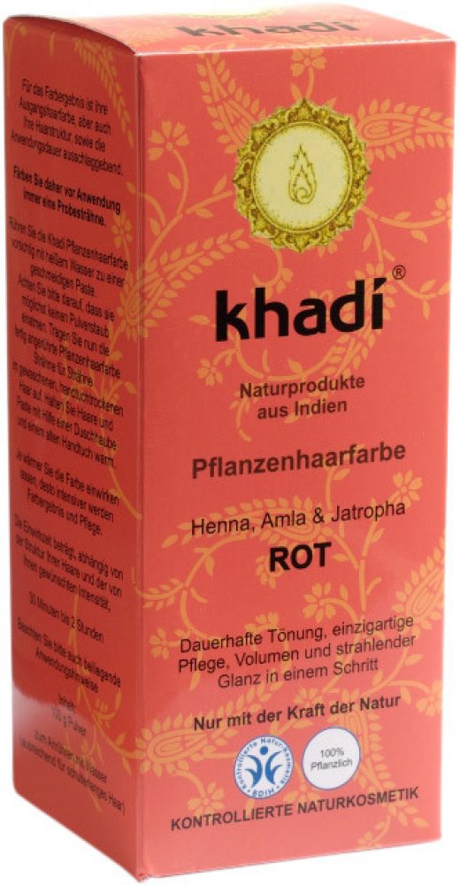 Výsledný tón závisí na přirozené barvě Vašich vlasů. Jemné vlasy se barví intenzivněji než silné vlasy. Khadi barva Henna, Amla & Jatropha dodává vlasům zároveň výrazný lesk a objem. Tato receptura obsahuje velké množství pečujících rostlin, jejich cenné složky intenzivně ošetřují vlasy.