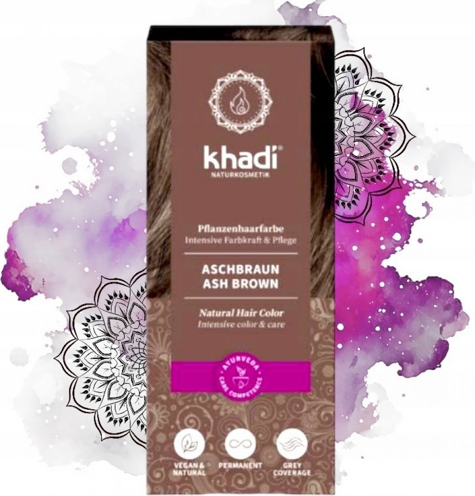 Khadi Popelavě hnědá se postará nejen o obarvení, ale také o výrazný objem a lesk vlasů.