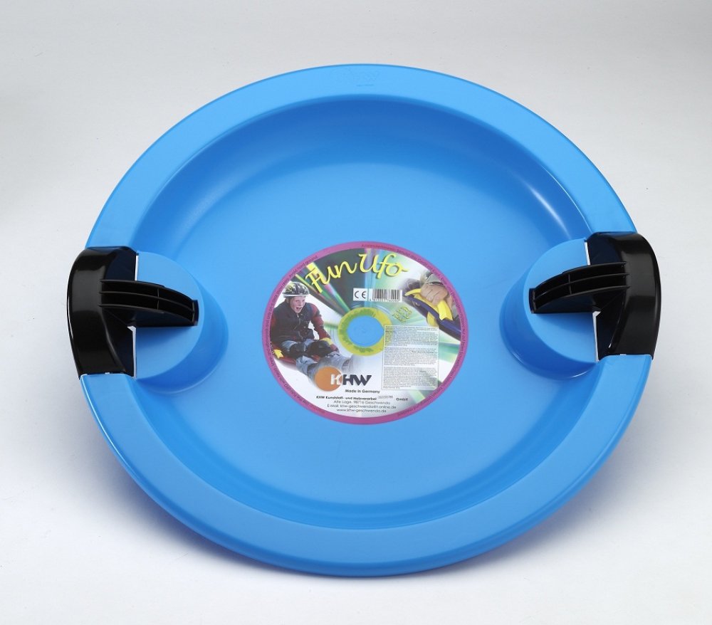 KHW Snow Ufo iceblue Plastový dětský kluzák na sníh, s postranními brzdami, tvar talíře, od německého výrobce KHW GmbH.