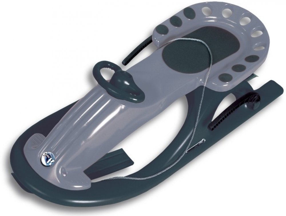 Odpružené moderní sáně s polstrovaným sedákem z protiskluzového materiálu, dvěma kovovými brzdami a zvýšenou zadní i postranní částí sedáku. Teleskopické řízení se střední lyží umožňuje použití pro všechny druhy a rozdílnou výšku sněhu.