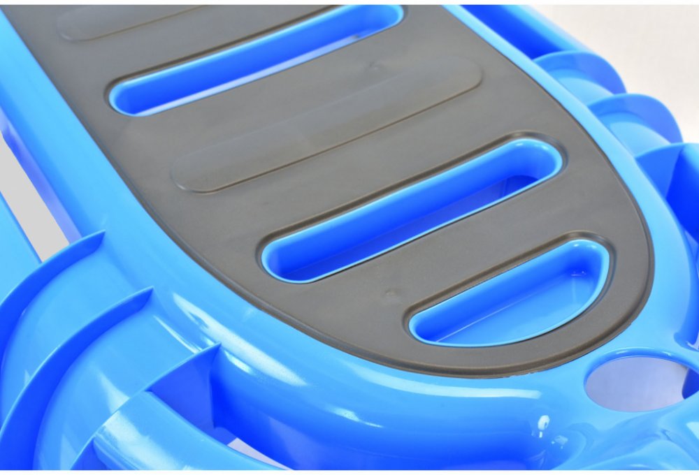 Sáňky jsou vyrobené z velmi kvalitního vysokohustotního polyethylenu, sedadlo je protiskluzově polstrováno termoplastickým elastomerem. Ližiny jsou opatřeny skluznicí z nerezové oceli a řídicí lyže je odpružená.