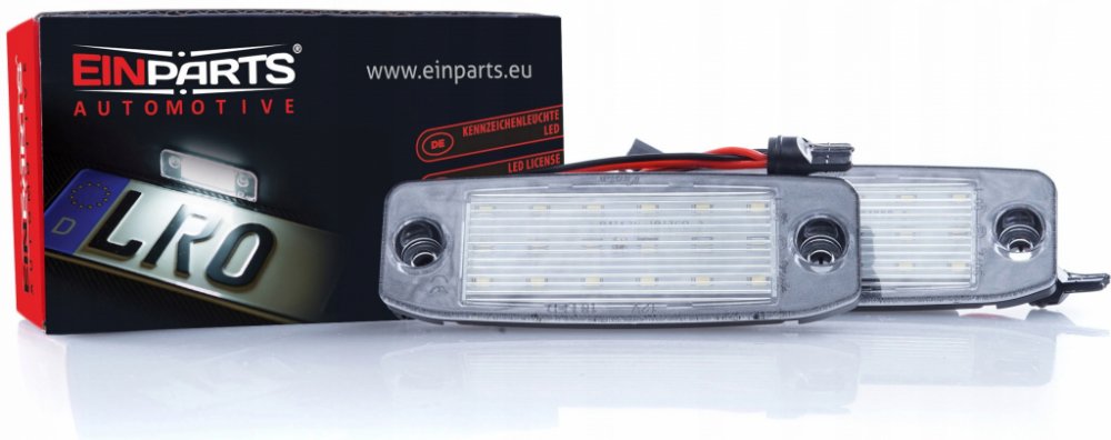 Sada 2 LED světel pro osvětlení registrační značky, náhrada za původně používané osvětlení s homologací s možností legálního použití na evropských silnicích. Mnohem lepší efekt podsvícení tabule, který nenahradí žádné běžné SMD diody.