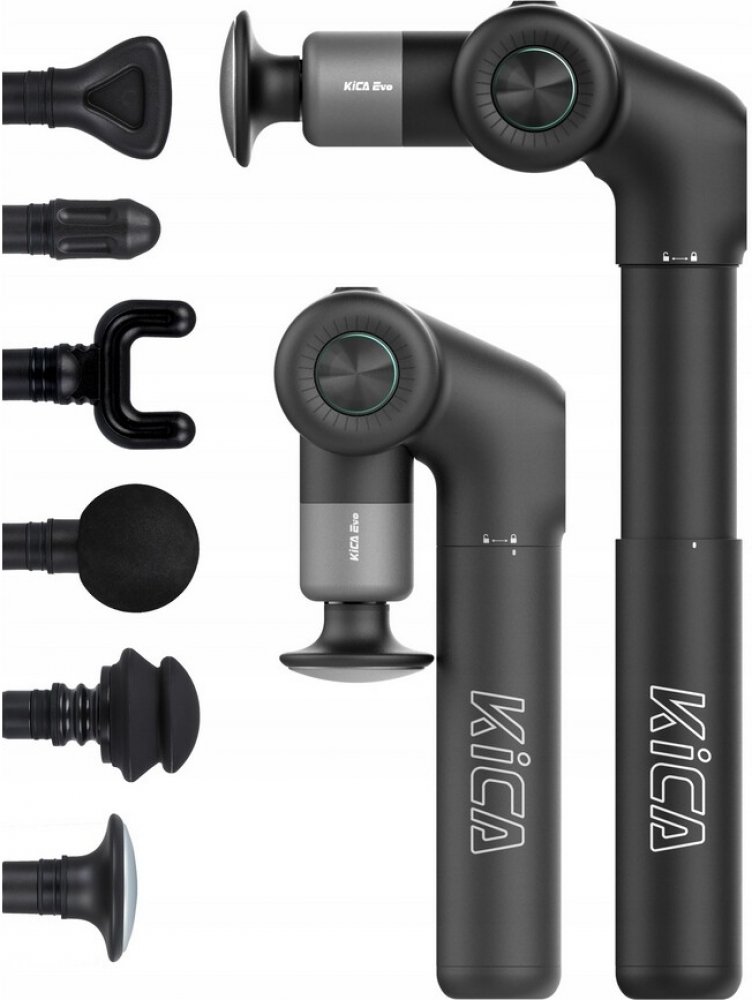 Uvolněte svaly po náročném dni ve fitku! Unikátní design masážního strojku KiCA Evo umožňuje masírovat těžko dosažitelná místa bez cizí pomoci. Masážní strojek KiCA Evo Nový unikátní design pro samostatnou masáž. Uvolněte svaly po náročném dni ve fitku! Ergonomická rukojeť ve tvaru L Rukojeť je konstruována do tvaru písmene L a je otočná až o 113°. Prodlužovací rameno umožňuje pohodlně masírovat vaše záda bez cizí pomoci. S přednastavitelnými režimy můžete ovládat tlak masážní hlavice jako nikdy předtím. Profesionální hloubková masáž Masážní přístroj je mimořádně výkonný díky nové generaci vysoce výkonných bezkomutátorových motorů. KiCA Evo dokáže vyvinout výkon až 3200 otáček za minutu při síle 10 kgf. Je tak vysoce účinný při odbourávání kyseliny mléčné a rychlém uvolňování svalů. Nechte se unést hřejivým dotekem V balení naleznete inovativní masážní hlavici, která se zahřeje na 40°C. Teplo lépe proniká do tkání, zmírňuje napětí ve svalech a přináší zklidnění. Kromě vyhřívané ploché hlavice najdete v sadě 5 dalších vyměnitelných nástavců. Masážní terapie Pravidelné procedury významně zlepšuje krevní oběh ve svalech, podpoří rehabilitační proces a urychlí vstřebávání hematomů a modřin. Terapie může také působit proti bolesti, stimulovat tvorbu kolagenu a zvýšit prokrvení a hydrataci tkání. KiCA Evo je ideální volbou pro seniory a osoby vyžadující zvláštní péči. Přístroj jednoduchým způsobem zlepší kvalitu života, přinese úlevu a podpoří rehabilitaci. Ideální volba pro sportovce Masážní pistole KiCA Evo je neocenitelnou podporou pro sportovce. Udělejte své tréninky a regeneraci ještě efektivnější. Pečujte o své svaly během odpočinku a regenerace. KiCA Evo je optimální pro překonání vlastních limitů, je ideální příprava svalů a pohyblivost kloubů před tréninkem. Specifické masážní hlavice pro každou situaci Šest na míru přizpůsobených masážních hlavic přináší komplexní úlevu od bolesti. Kulovitá hlavice: Uvolňuje měkké tkáně a citlivé svaly. Hlavice ve tvaru U: Vhodná pro masáž krku (nikoli krční obratle) a šlach. Kuželovitá hlavice: Masírujte hluboké tkáně - akupunkturní body apod. Stromová hlavice: Vhodná pro masáž velkých i malých citlivých svalových ploch. Klínovitá hlavice: Uvolňuje bederní svaly. Topná hlavice: Ideální pro celotělovou masáž. Inteligentní ochrana Konstruktéři navrhli masážní přístroj tak, aby nedošlo ke zranění svalů a kostí při dlouhodobém masírování stejné svalové oblasti. KiCA Evo automaticky přejde do pohotovostního režimu, když masáž trvá více než 10 minut. Pokud není zařízení aktivováno do 3 minut, automaticky se vypne. Technické specifikace Hmotnost: cca 690 g Rozměry - složený: 98 × 239 × 81 mm Rozměry - rozložený: 148 × 330 × 81 mm Kapacita baterie: 1600 mAh Rozsah provozního napětí: 13,2 V ~ 16,8 V Rozsah provozní teploty: 0 ° až 40 °C Teplotní rozsah nabíjení: 0 °C až 40 °C Doba nabíjení: cca 7,5 hodiny Otáčky: až 3200 za minutu ±10 % Výdrž baterie: Přibližně 12 hodin Co je v balení 1. KiCA Evo 2. Kulovitá masážní hlavice 3. Masážní hlavice ve tvaru U 4. Kuželovitá masážní hlavice 5. Stromová masážní hlavice 6. Klínovitá masážní hlavice 7. Topná masážní hlavice 8. USB-C kabel 9. Ochranné pouzdro 10. Uživatelská příručka.