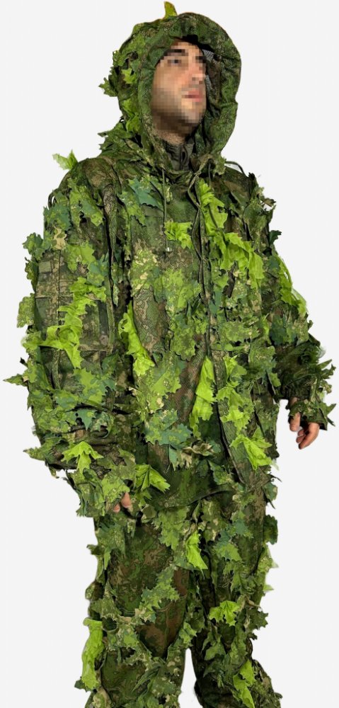 Možnost přidání vegetace: Nabízí možnost instalovat na oblek okolní vegetaci nebo umělé materiály pro efektivnější maskování.