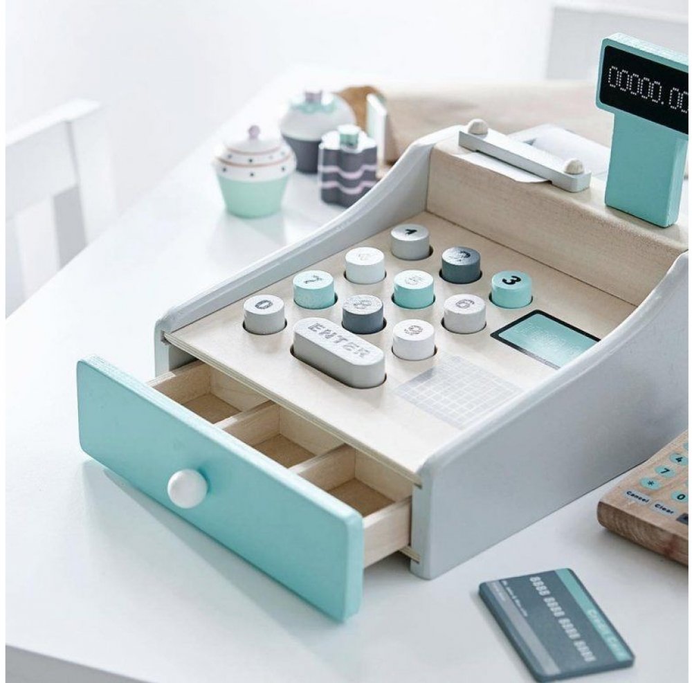 Pokladna je součástí ucelené kolekce dřevěných hraček Kids Concept Bistro.