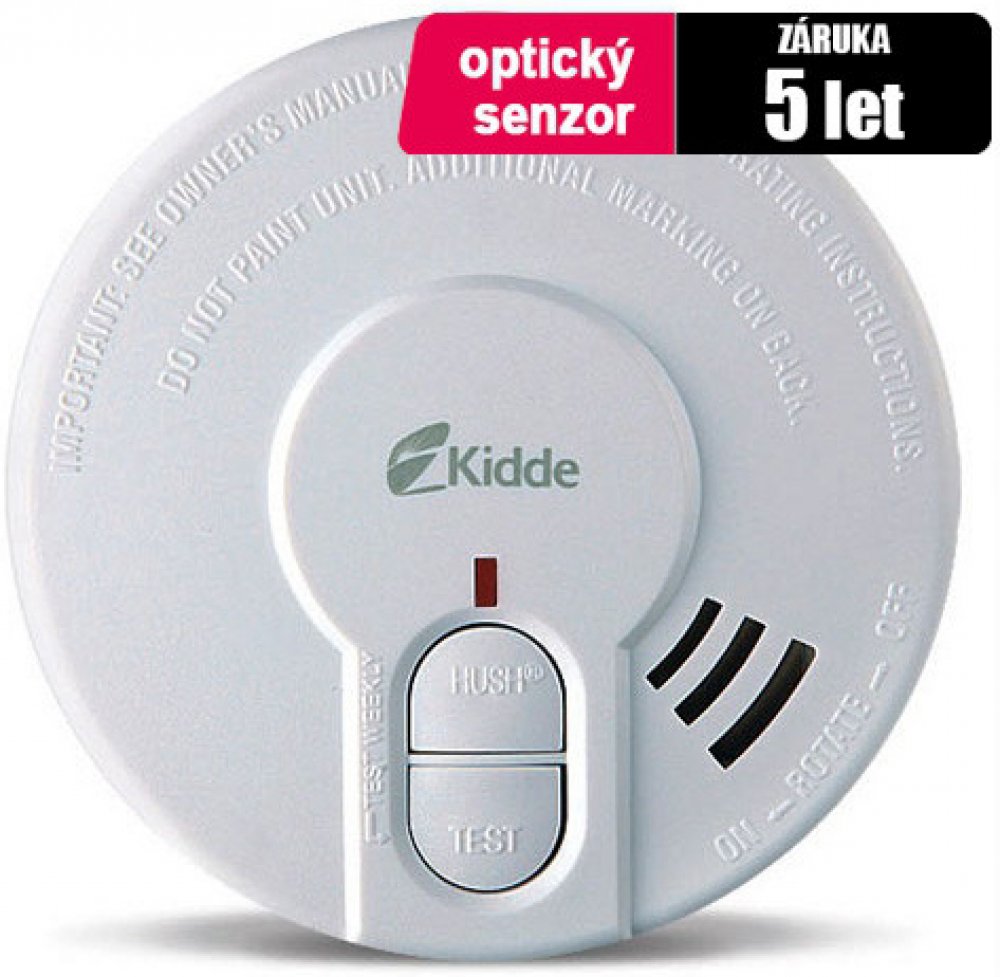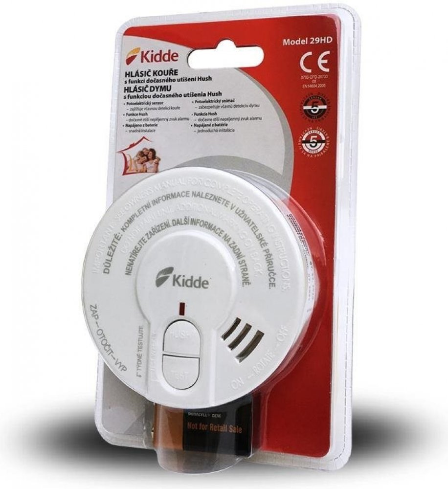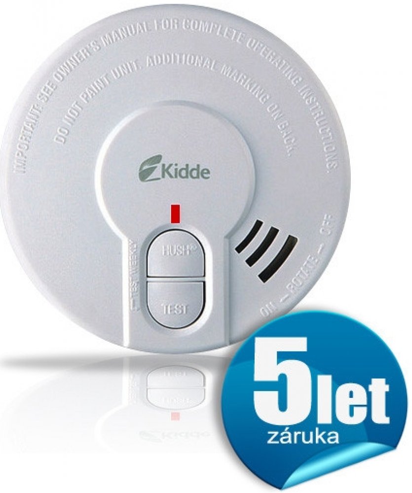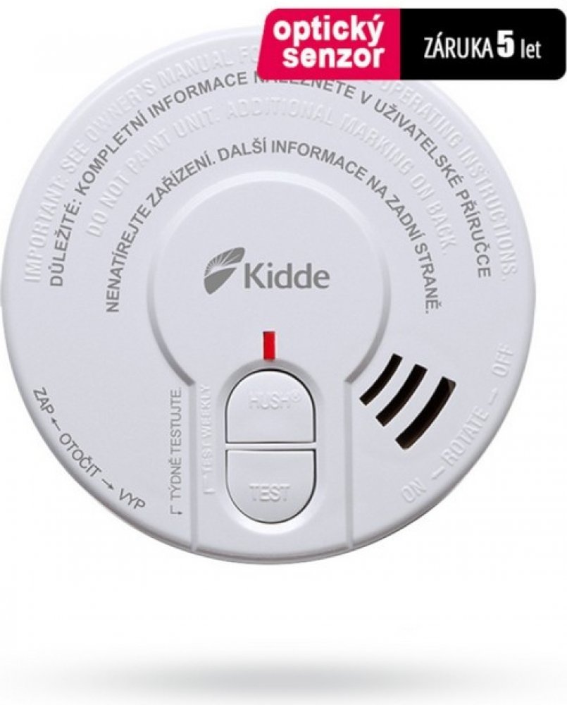Hlásič požáru je vybaven testovacím tlačítkem TEST pro kontrolu správného fungování zařízení a HUSH pro přechodné umlčení požárního hlásiče pro případ planého alarmu. Stisknutí tlačítka způsobí okamžitou deaktivaci alarmu, na dobu asi 10minut, snížení citlivosti obvodů a vypnutí akustické signalizace hlásiče. Tlačítko HUSH používejte pouze tehdy, pakliže znáte příčinu aktivace hlásiče (např. při vaření nebo smažení). Po cca 10 minutách od deaktivace hlásiče se tento zcela automaticky resetuje do původního nastavení pro monitorování nebezpečí požáru. Pokud v místnosti zůstane vysoká koncentrace kouře, můžete stisknout tlačítko HUSH opakovaně a to až do okamžiku kdy je místnost řádně odvětrána. Tento model je vybaven nejmodernějším fotoelektrickým senzorem Kidde.