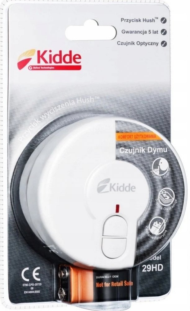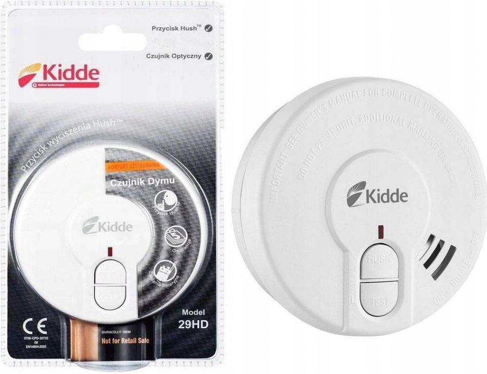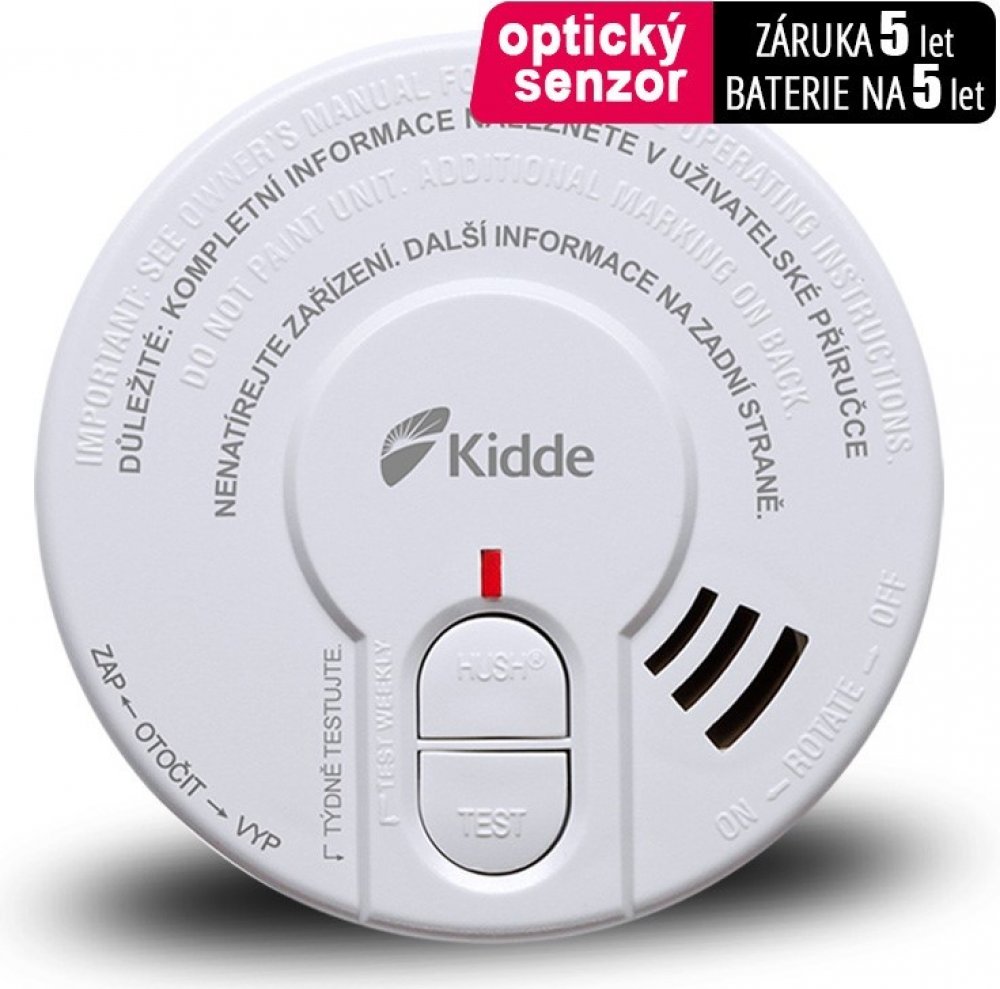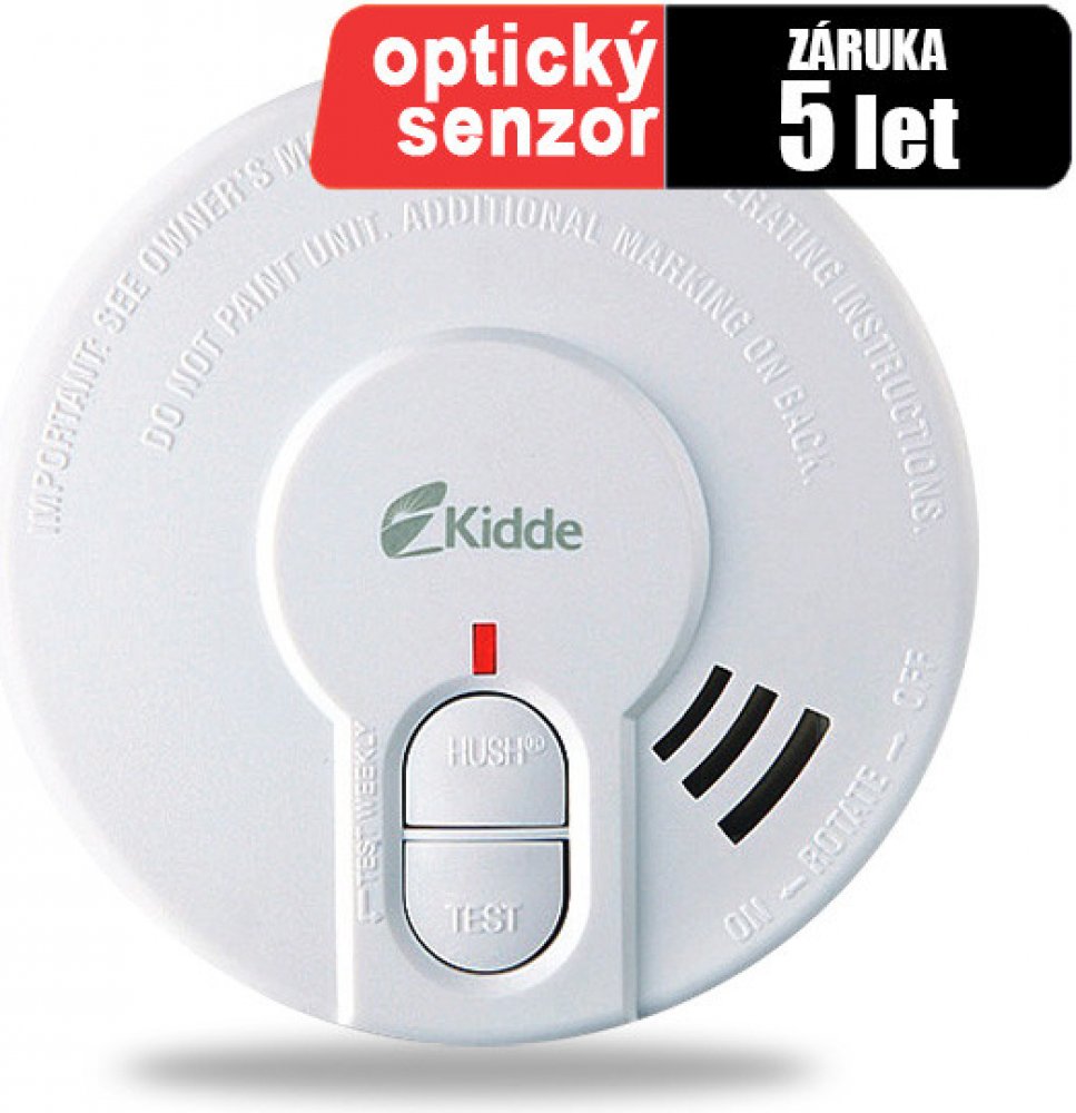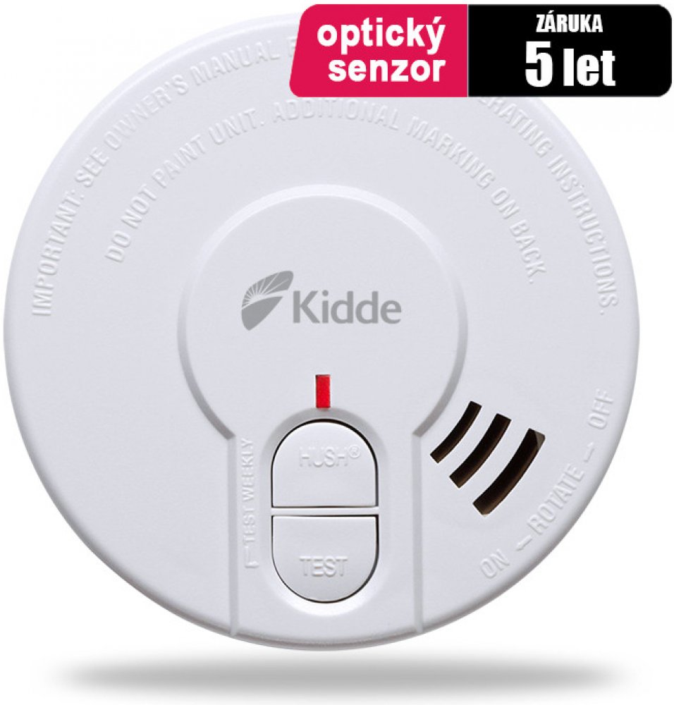 Hlásič požáru je vybaven testovacím tlačítkem TEST pro kontrolu správného fungování zařízení a HUSH pro přechodné umlčení požárního hlásiče pro případ planého alarmu. Stisknutí tlačítka způsobí okamžitou deaktivaci alarmu, na dobu asi 10minut, snížení citlivosti obvodů a vypnutí akustické signalizace hlásiče. Tlačítko HUSH používejte pouze tehdy, pakliže znáte příčinu aktivace hlásiče (např. při vaření nebo smažení). Po cca 10 minutách od deaktivace hlásiče se tento zcela automaticky resetuje do původního nastavení pro monitorování nebezpečí požáru. Pokud v místnosti zůstane vysoká koncentrace kouře, můžete stisknout tlačítko HUSH opakovaně a to až do okamžiku kdy je místnost řádně odvětrána. Tento model je vybaven nejmodernějším fotoelektrickým senzorem Kidde.