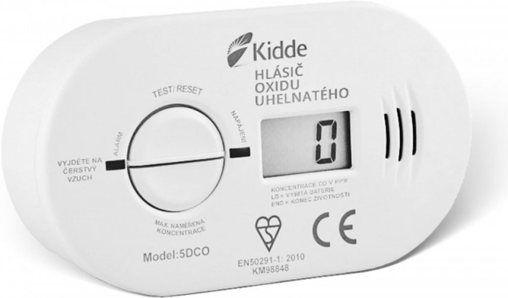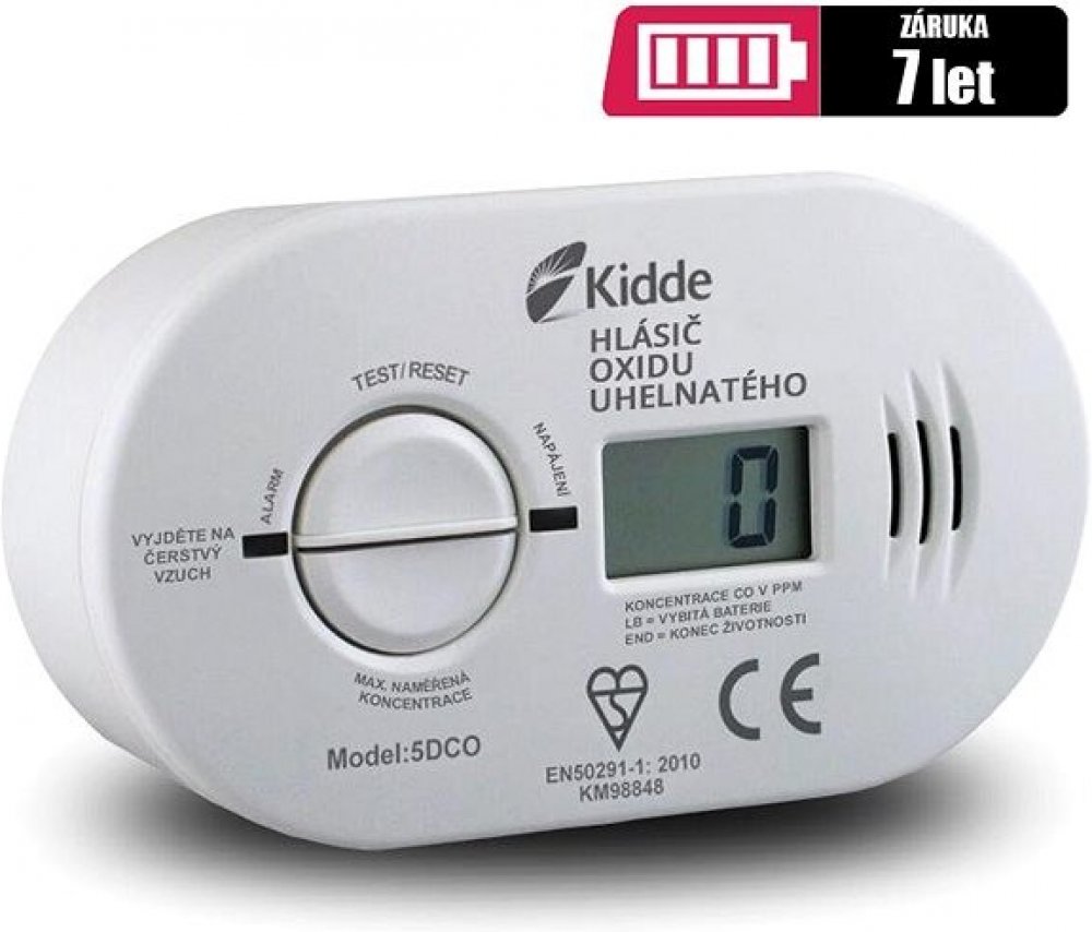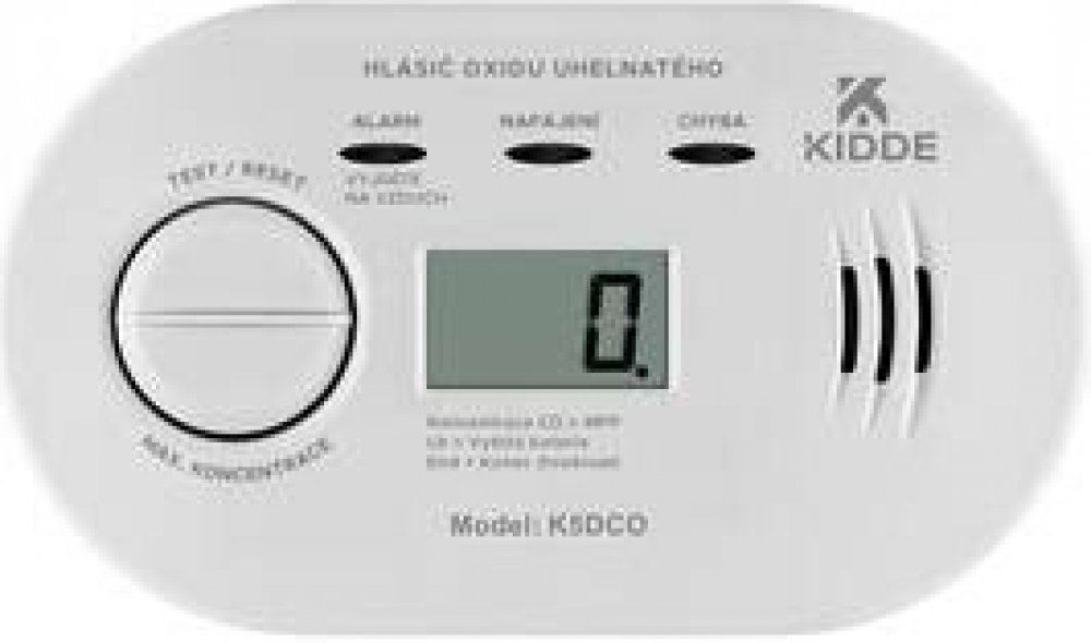 1x detektor oxidu uhelnatého s LCD displejem - model Kidde K5DCO