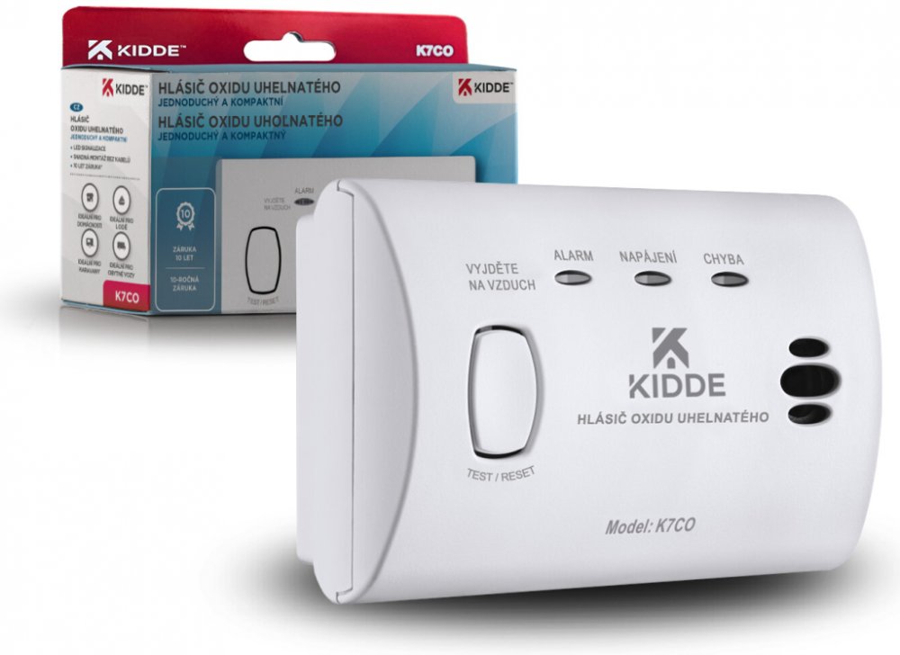 Detektor oxidu uhelnatého (CO) Kidde K7CO průběžně monitoruje přítomnost jedovatého oxidu uhelnatého v domácnostech nebo provozovnách, a tak poskytuje ochranu před jeho smrtelnými účinky. Disponuje trojicí kontrolních LED indikátorů prostřednictvím kterých indikuje stavové informace. Hlásič lze pevně instalovat na stěnu nebo pro lepší pohodlí jednoduše volně položit na stůl, regál nebo jiný vodorovný povrch. Je ideálním bezpečnostním prvkem a spolehlivou ochranou před tímto tichým zabijákem nejen pro domácnosti, ale i v pronajatých ubytovacích prostorách, na dovolených, při cestování obytným