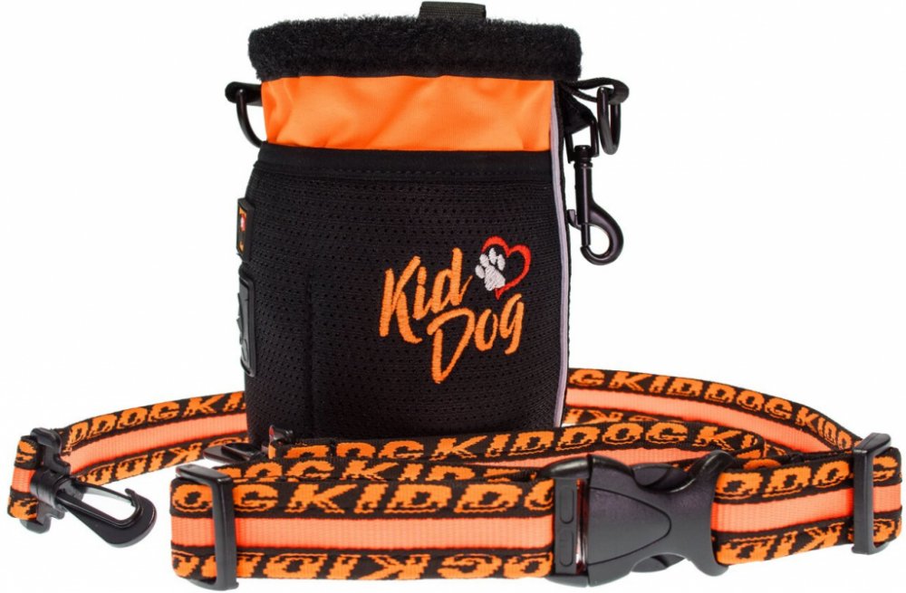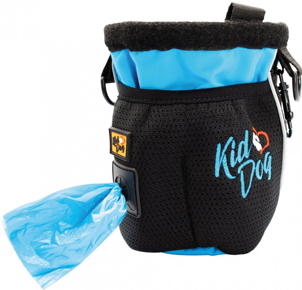 Špičkový outdoorový produkt v moderním designu do jakéhokoliv počasí. Pamlskovník je určený pro výcvik a odměňování Vašeho parťáka. Pamlsky jsou uložené uvnitř velkého prostoru s možností jednoduchého a rychlého vyjmutí. Můžete ho využít při cvičení poslušnosti, výchově nebo agility tréninku. Na procházkách v přírodě využijete jeho praktičnost, díky boční síťované kapse, která má oddělenou vnitřní kapsičku s integrovaným dávkovačem sáčků na exkrementy. Jedna role s 20 sáčky je součástí balení. Pamlskovník je vyrobený z odolného, nepromokavého, omyvatelného a nepromastitelného outdoorového materiálu. Na zadní části pamlskovníku je kovový klip ve tvaru poutka pro upevnění k opasku u kalhot. Na boční straně je umístěná karabina pro připnutí klíčů, píšťalky nebo klikru. Reflexní bezpečnostní pásky vám zajistí lepší viditelnost za šera. Praktický je odnímatelný nastavitelný popruh, který v maximální délce měří 125 cm a můžete jej použít k nošení pamlskovníku přes rameno, kolem pasu anebo v krajním případě popruh poslouží jako vodítko. Vyšité logo KIDDOG dodává pamlskovníku atraktivní design.