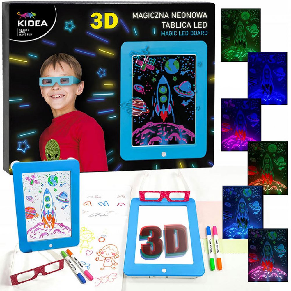 KIDEA Psací a kreslící 3D tablet LED s podsvícením