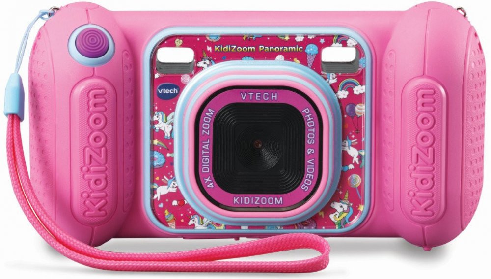 KidiZoom Panoramic je zábavný, odolný a lehce ovladatelný dětský digitální fotoaparát s videokamerou i panoramatickým focením. Veškeré ovládání a pokyny jsou kompletně v češtině nebo slovenštině (lze přepínat) Obrovské množství triků, obrázků, rámečků, efektů a zábavných animací z něj dělají nekončící a skvělou zábavu snad pro všechny děti. K dispozici je dokonce i režim selfie a režim panoramatické fotografie. Kidizoom má k dispozici i hlasový záznamník s měničem hlasu a efektem vytváření „mluvících tváří“. Poutavé animace vytvoříte se zabudovaným programem Stopmotion. Samozřejmě nechybí ani kreativní a naučné hry, které lze hrát přímo na displeji fotoaparátu.