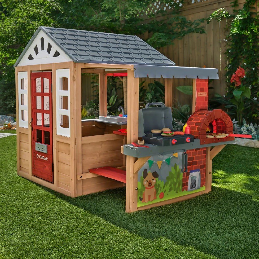 Moderní design krásného, téměř pohádkového domečku o rozměrech 186.99 x 122.0 x 138.99 cm z cedrového dřeva, je díky své velikosti vhodný do menších zahrad.