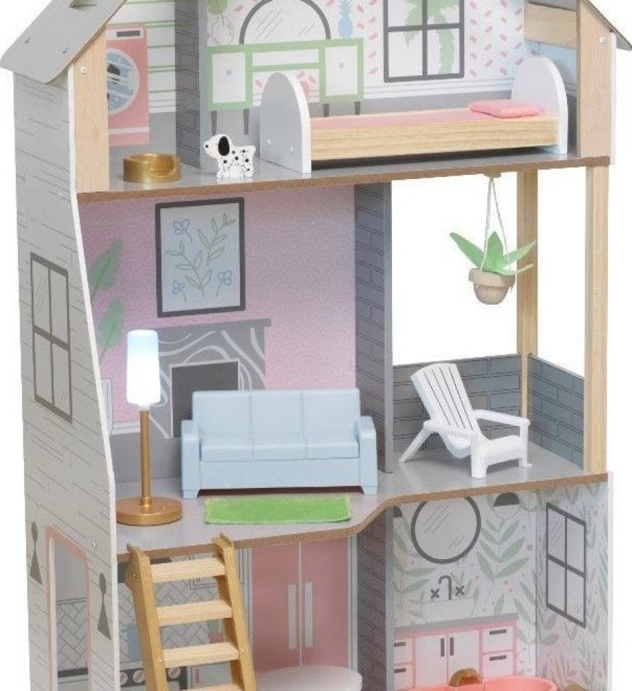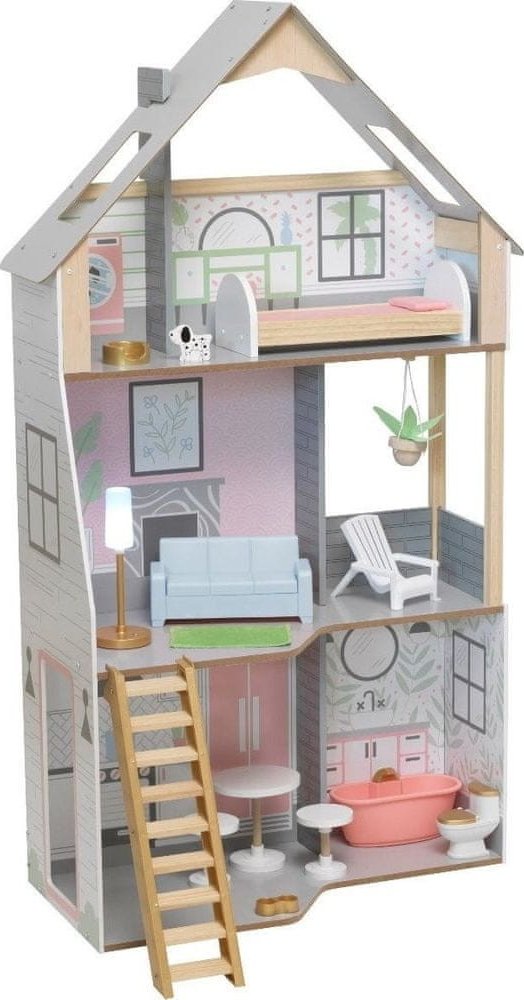 Domeček pro panenky Kidkraft AlinaDomeček pro panenky KidKraft Alina je vzdušný a světlý.Pro extrémní zábavu na malém prostoru je design ve venkovském stylu konstruován, nikoliv venku, aby maximalizoval funkčnost a zábavu.Příslušenství uložíte do skryté přihrádky v lavici.Moválné schodiště lze také uložit!Svérázná veranda, spousta nábytku a výbuchy lesku podněcují představivost s dostatkem prostoru pro víru. Dřevěný domeček pro panenky Alina je vzdušný a světlý. Je vhodný i do menších prostorů. Ve třech podlažích je vše, co je ke hře s panenkou potřeba. V přízemí se nachází prostorná kuchyně a kouplena, ve druhém je obyvák a veranda a v podkroví ložnice a druhá koupelna. Součástí domečku je 15 kusů nábytku a příslušenství. rozměry domečku:66 x 38 x 115 cm vhodné pro děti od 3 let