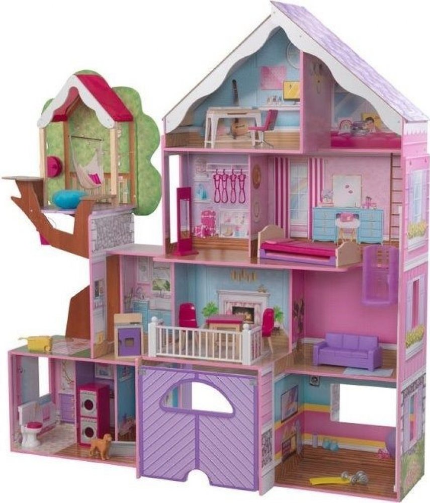 Velký domeček plný zábavy je propleten celou škálou pestrých zákoutí plných zábavy, fantasie a nekonečné hry. Tento čtyřpodlažní domeček s úžasným domečkem na stromě způsobuje okamžitý "WOW" efekt a rozzáří oči všem holčičkám. Domeček na stromě je osvětlený světelným řetězem, útulně vybavený a dokonce má i navíjecí kladku s kbelíčkem na vodu nebo jiné úlovky.