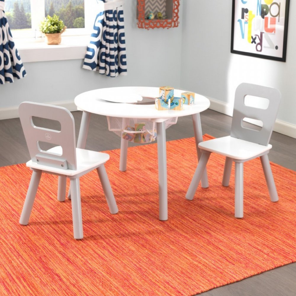 V prodeji set s poškozeným obalem - krabicí. Krásný kulatý stůl se dvěma židličkami ze dřeva v šedo-bílé kombinaci učaruje i Vaší holčičce! Nábytek KidKraft z kvalitního dřeva je ideálním místem pro psaní domácích úkolů, kreativní tvoření, malování i herní radovánky. Uprostřed stolu je otvor, po oddělání víčka je možné do síťového vaku pod stolem uklidit hračky nebo třeba nádobí z čajového dýchánk...