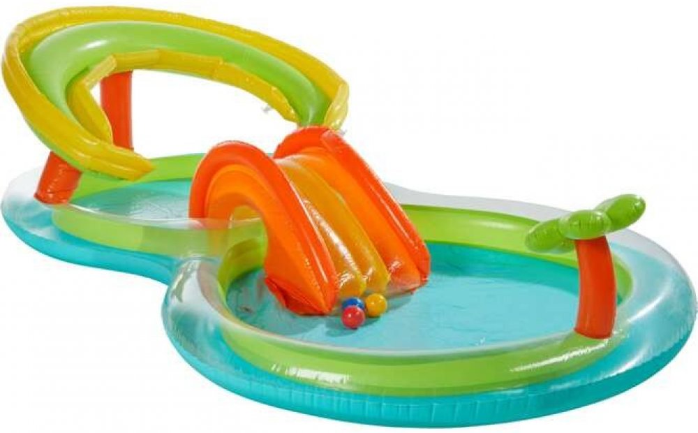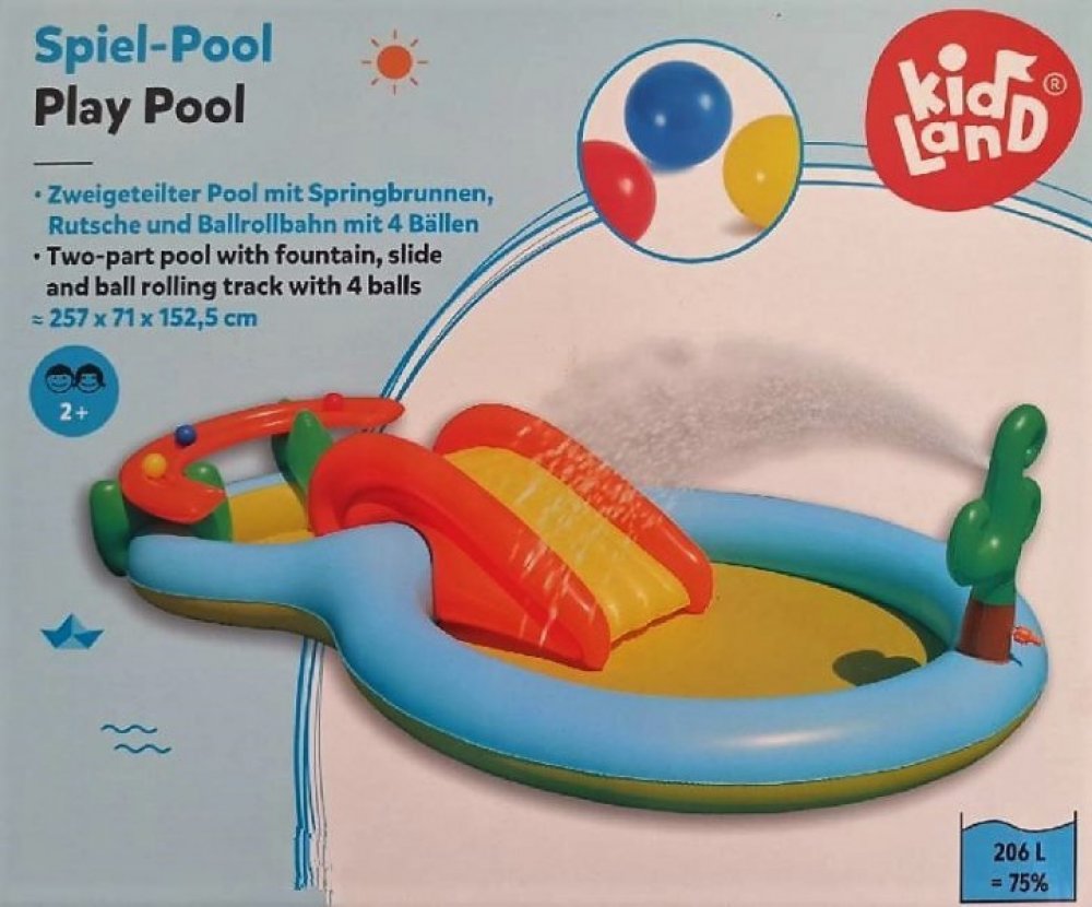 - Dvoudílný bazén s fontánou, skluzavkou a rolovací dráhou se 4 míčky