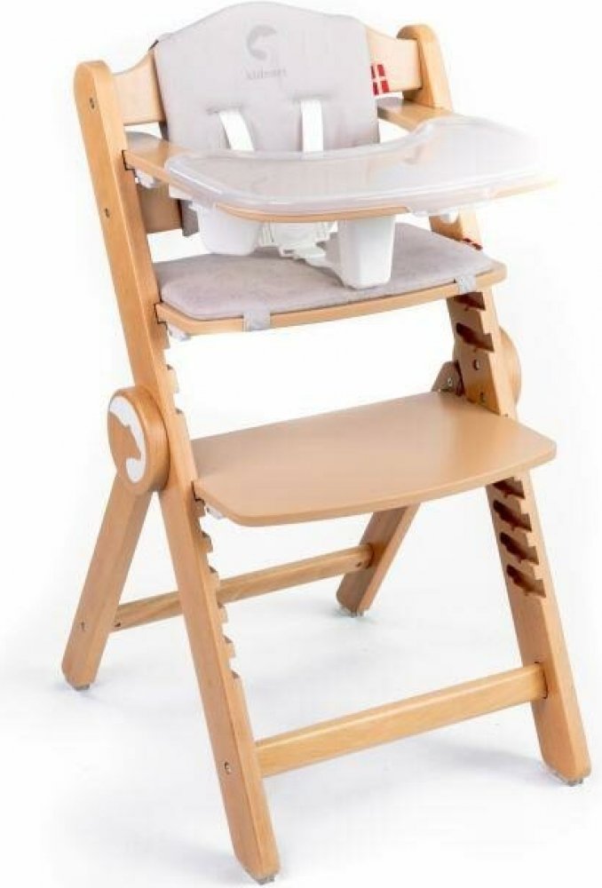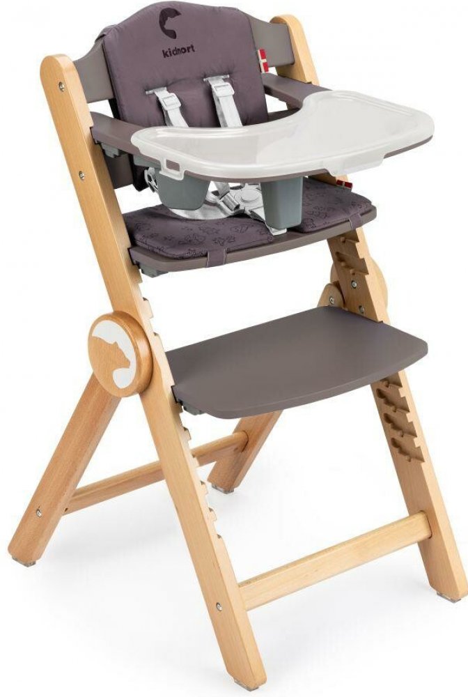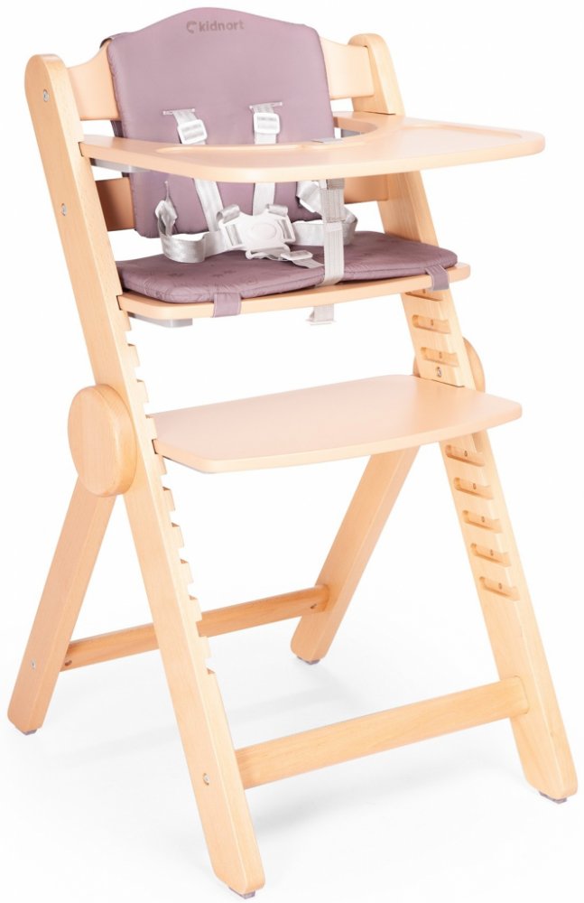 Jídelní židlička Kidnort Drömmer Dřevěná židle s 11 výškovými nastaveními, vyrobená z bukového dřeva, zajišťuje pohodlí a flexibilitu použití, dokonale se přizpůsobí různým výškám stolů a výšce dítěte. Mnoho možností nastavení Multifunkční jídelní židlička, která roste s dítětem, je ideálním řešením pro rodiče, kteří hledají produkt, který se přizpůsobí měnícím se potřebám jejich dítěte. Díky možnosti nastavení do 11 úrovní lze židličku snadno proměnit z krmící židličky na židličku pro starší dítě a zajistit její využití po mnoho let. JEDNODUCHÉ SKLÁDÁNÍ Židle se složí vertikálně. Skládání židličky je mimořádně intuitivní, usnadňuje skladování i v těch nejmenších prostorách a také jeho přepravu, což se hodí zejména při cestování. PÉČE O BEZPEČNOST Židle je vybavena 5bodovým bezpečnostním pásem zajišťujícím bezpečné používání židle dítětem. Pásy lze také zcela sundat. Židle je vyrobena z buku a vyznačuje se mimořádnou odolností a elegantním vzhledem, díky přírodním vláknům a charakteristické barvě bukového dřeva. Jeho pevná konstrukce zajišťuje stabilitu při používání, což z něj dělá nejen estetickou, ale i praktickou volbu pro rodiče. Tác židle má jednoduchý systém demontáže , který umožňuje rychlé přizpůsobení různým situacím. Intuitivní vkládání a vyjímání tácu a sedátka usnadňuje snadný výběr vhodného nastavení podle preferencí dítěte. Židle je vybavena snímatelným potahem. Polštáře na sedáku a opěradle, které lze snadno vyjmout a prát maximálně na 30 stupňů , zaručují jednoduchou údržbu a pohodlí.\n\n Židle je vybavena protiskluzovými nožičkami. Toto řešení výrazně zvyšuje bezpečnost používání a chrání před náhodným pohybem židličky.