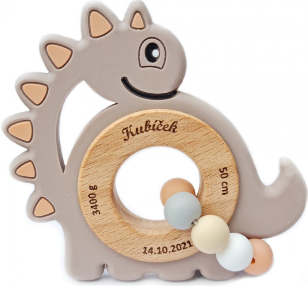 Text na kousátku je gravírovaný laserem bez použití tisku. Je zdravotně nezávadný a věčný. Údaje, které gravírujeme jsou zahrnuty v ceně kousátka. Pokud byste měli zájem o věnování na druhou stranu kolečka či libovolný text, tak je to pochopitelně možné, ale tato služba je již zpoplatněna níže.