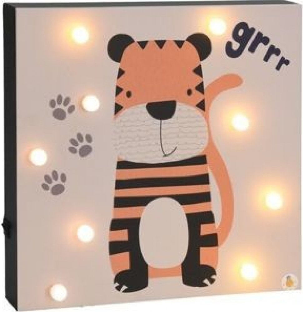Ozdobte svým dětem jejich pokojíček tímto překrásným obrázkem roztomilého tygříka. Díky 9 LED žárovkám navíc ve tmě svítí. Na straně najdete tlačítko pro zapnutí a vypnutí světla.