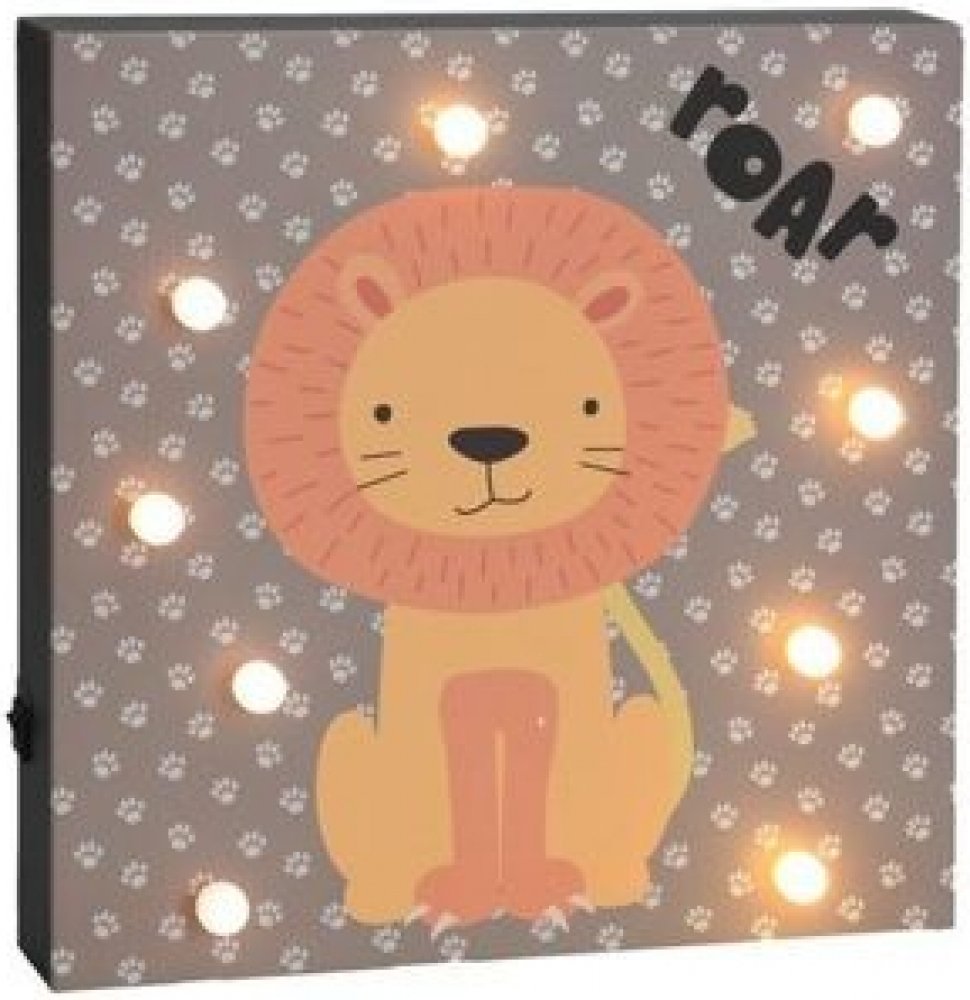 Ozdobte svým dětem jejich pokojíček tímto překrásným obrázkem roztomilého lvíčka na podkladu z tlapiček. Díky 9 LED žárovkám navíc ve tmě svítí. Na straně najdete tlačítko pro zapnutí a vypnutí světla.