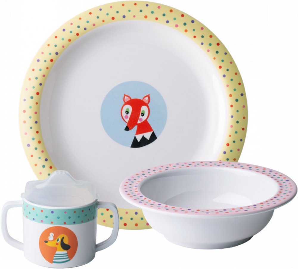 Dětský set přinese jedinečné zážitky ze stolování i nejmenším členům rodiny. Barevné obrázky zvířat je zabaví během čekání na jídlo a vy ho tak budete moci bezstarostně servírovat. Set obsahuje: 1× talíř hluboký 1× talíř mělký 1× šálek SET: 3 ks
