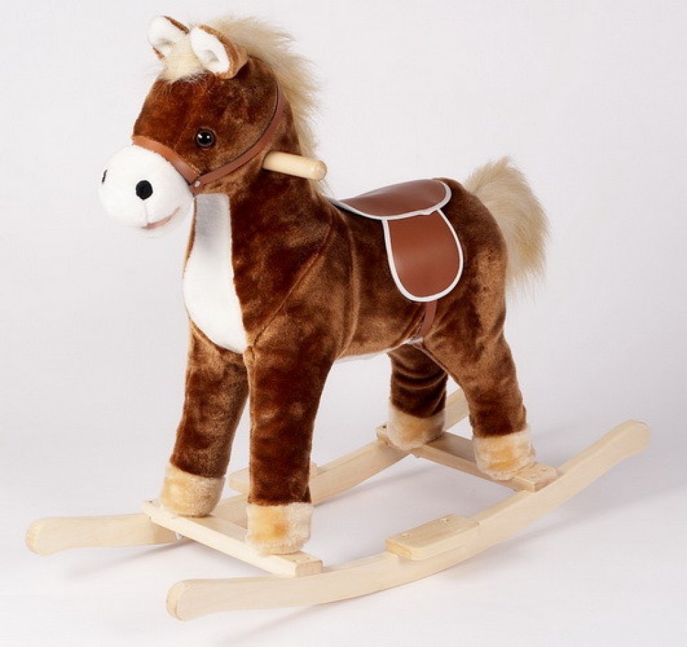 Houpací koník je vyroben z kvalitního plyše, má pohodlné sedlo a dřevěná madla.