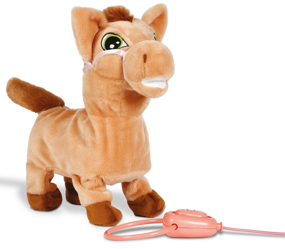 Plyšový chodící koník na vodítku. Koník je vyroben z jemného plyše. Koník se ovládá pomocí ovladače na vodítku - chodí, hýbe ocasem, řehtá, kýve hlavou.Interaktivní koník je idální dárek! Interaktivní koník se stane kamarádem každého dítěte!