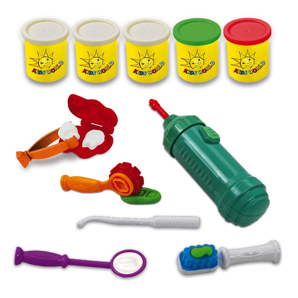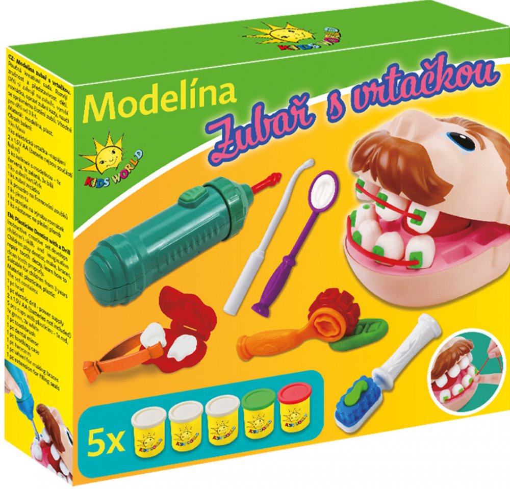 Hra modelína zubař s vrtačkou rozvíjí fantazii a zlepšuje motoriku dětí! Skvělá zábava pro malé zubaře. Vymodelujte nové zoubky nebo vyvrtejte kaz pomocí elektrické zubní vrtačky. Naučte se správné čištění zubů nebo vymodelujte rovnátka. Modelína je v pestrých barvách (červená, zelená, bílá) je měkká a dobře tvarovatelná.