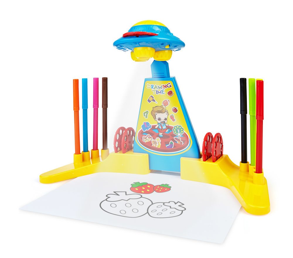 Zábavnou formou projektor na malování naučí děti kreslit a vymalovávat. Do projektoru vložíte kolečko s obrázky a projektor vše zobrazí na papír nebo na stůl. Pak už stačí jen vyměňovat obrázky a kreslit nebo vymalovávat.