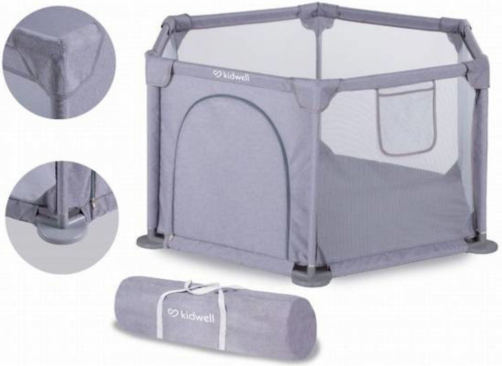 Ohrádka - dětské hřiště FANKO šedé (120x120cm) od Kidwell. Je vhodná pro děti do 6 let. Zip umožňuje starším dětem samostatný vstup a výstup. Výrobek se vyznačuje snadnou montáží. Protiskluzové silikonové nožičky zabraňují sklouznutí ohrádky. Lze ji používat v interiéru i exteriéru. Součástí balení je taška na přenášení - obal. rozměry balení: 60x15,5x20cm Věk: do 6 let