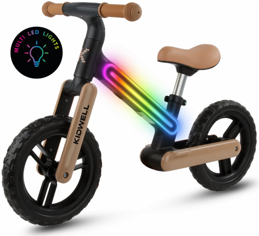 Největší její výhodou jsou LED světla, díky kterým bude dítě dokonale viditelné za horšího počasí a když venku zšedne a zábava pokračuje v nejlepším. Zvýší to velmi bezpečnost během používání. Má až 20 světelných sekvencí. Rám je navíc vyroben z velmi odolného nylonu, který se používá v průmyslu k výrobě prvků odolných vůči zatížení. Díky hmotnosti pouhých 3,05 kg se batole bez námahy naučí udržovat rovnováhu a zlepšuje koordinaci pohybů.