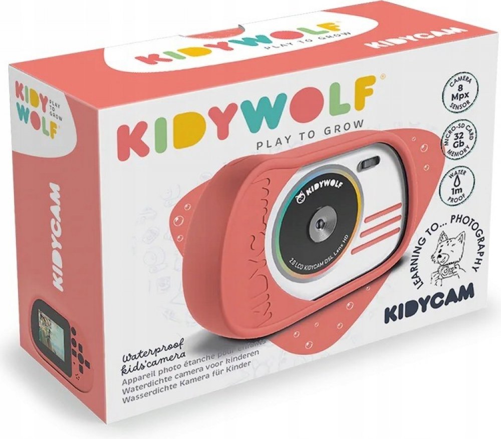 Digitální fotoaparát Kidywolf Kidycam s vodotěsnou úpravou, která umožňuje dětem fotit a natáčet videa i na tobogánu nebo při šnorchlování. Intuitivní a jednoduché ovládání, interní paměť 16 GB, rozlišení 8MP a 800mAh dobíjecí baterie z něj udělají praktický i zábavný nástroj, který podpoří dětskou kreativitu.