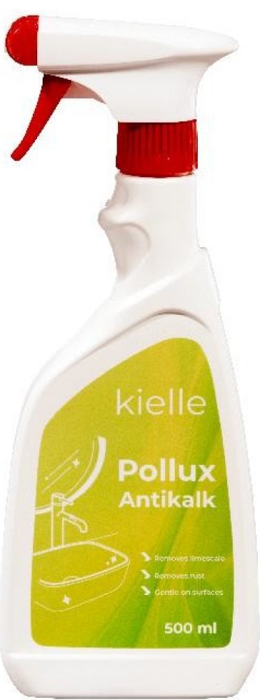 Neředěný přípravek kielle Pollux Antikalk naneste na znečištěný povrch, nechte působit dle míry znečištění, mechanicky setřete houbičkou či hadříkem, a nakonec důkladně opláchněte. Pozor – nepoužívejte na povrchy s poškozenou glazurou!.