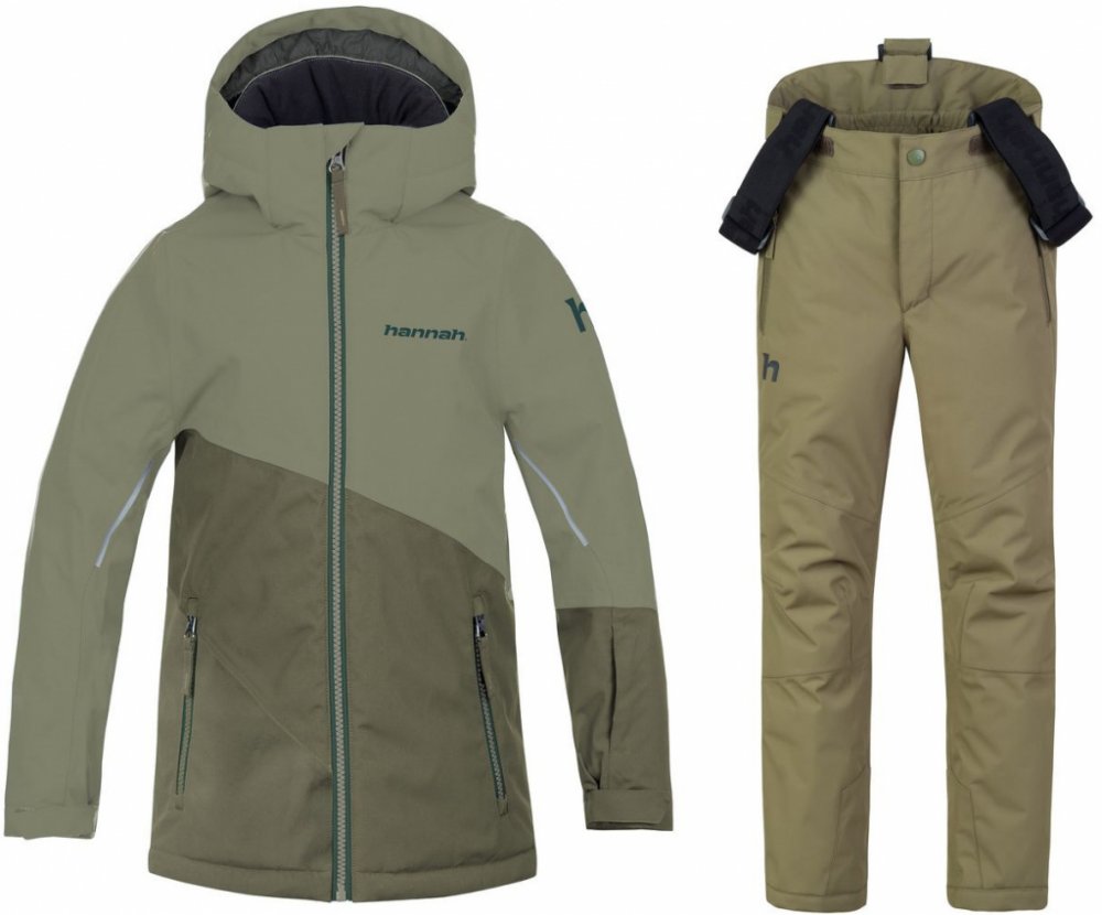 Popis bundy: Lyžařská bunda Hannah Kigali Jr s membránou Resstex s vodním sloupcem i prodyšností v hodnotách 10 000. Kompletně vybavená dětská bunda na lyže má sněhový límec a anatomicky tvarované rukávy zakončené stahováním patkou na suchý zip. Rukávy mají i vnitřní elastickou manžetu, která zamezuje vniknutí sněhu a zároveň má funkci termoregulační. Kvalitní izolace Duratherm Classic zaručuje optimální funkčnost a dostatečný tepelný komfort. Svrchní vodoodpudivá úprava DWR zajistí nenasákavost materiálu. Bunda disponuje několika kapsami - dvě hlavní kapsy na zip, rukávová kapsa na skipas a vnitřní kapsa na zip. Kompletně podlepené švy, regulovatelný dolní lem a bezpečnostní reflexní prvky musí být. Asymetrický design bude na svahu i mimo něj velmi dobře rozpoznatelný. Předurčená pro lyžování, vhodná samozřejmě i pro jiné zimní aktivity. Popis kalhot: Zateplené lyžařské kalhoty Hannah Akita Jr II s membránou Resstex s vodním sloupcem i prodyšností v hodnotách 10 000. Kvalitní izolace Duratherm Classic zaručuje optimální funkčnost a dostatečný tepelný komfort. Svrchní vodoodpudivá úprava DWR zajistí nenasákavost materiálu. Regulovatelný obvod pasu patkami na suchý zip s gumou v zadní části a odepínatelné šle dávají prostor přizpůsobení každé dětské postavě. Zvýšený sed v kombinaci se sněhovým límcem u bundy zajistí, aby sníh zůstal jen tam kde má. Nohavice jsou v oblasti kolen anatomicky tvarované a v dolní vnitřní části zakončené sněhovou manžetou. Nechybí kapsy na zip a reflexní prvky zajišťující bezpečnost. Předurčená pro lyžování, vhodná samozřejmě i pro jiné zimní aktivity.