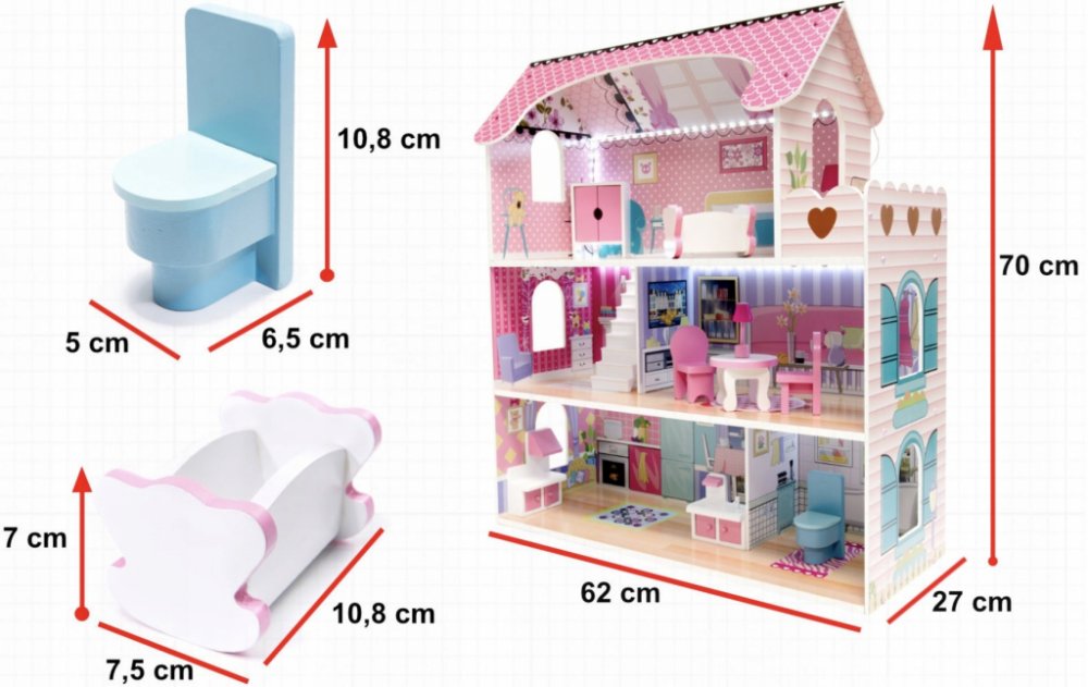 Rozměry domu: 62 cm x 27 cm x 70 cm