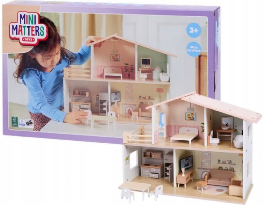 Součástí je krásný nábytek. Příslušenství je vyrobeno ze dřeva.Například v místnosti, která slouží jako kuchyň, najdete krásný kus nábytku s otevíracími dveřmi. Přiložené příslušenství bude skvělým doplňkem každého pokoje a bude se hodit při společných hrách.