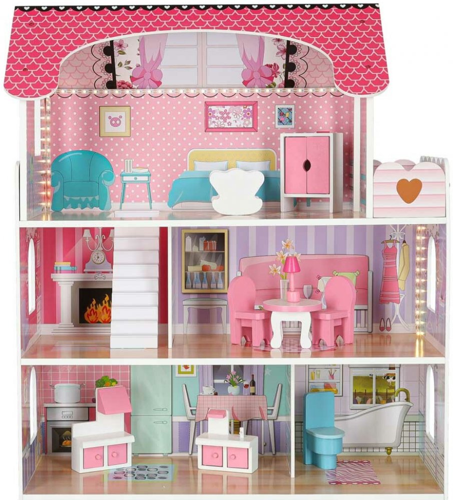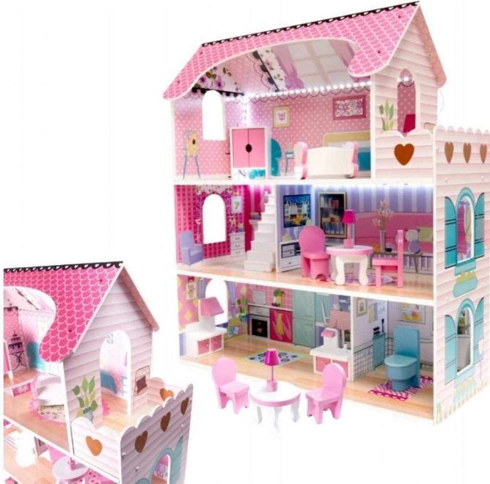 - OSVĚTLENÍ LED - Domečky pro panenky jsou vybaveny působivým LED osvětlením, které nejen skvěle vypadá, ale lze ho použít i jako noční lampičku.Světla jsou umístěna na lepicí pásce, kterou stačí nalepit na stropy a stěny domu. Světla lze připevnit libovolným způsobem. Napájení bateriemi AA (nejsou součástí dodávky).