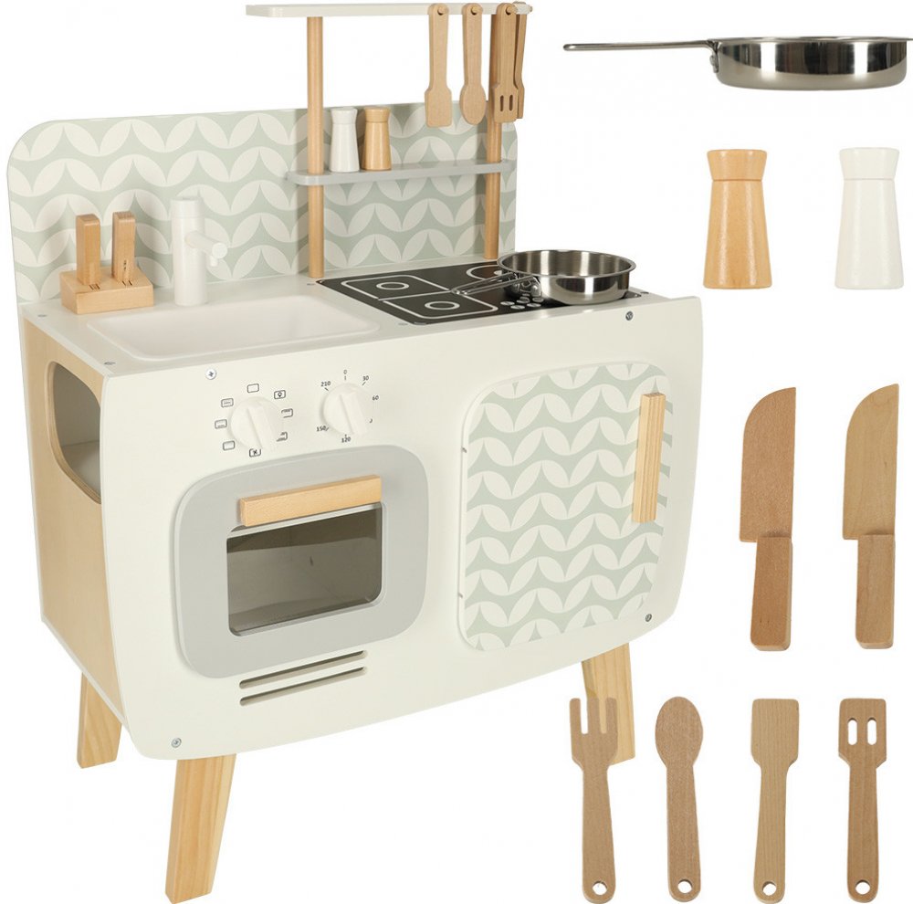Dřevěná kuchyňka MDF Lulilo Retro je perfektní hračka pro malé kuchaře od 3 let. Tato detailní miniatura skutečné kuchyně je vyrobena z kvalitního dřeva a vybavena nezbytnými kuchyňskými spotřebiči, jako je trouba, sporák a dřez, které zajistí autentický zážitek z vaření. Pohyblivé prvky, jako otočné knoflíky, přidávají na realističnosti a umožňují dětem zapojit se do hry naplno. Kuchyňka obsahuje...