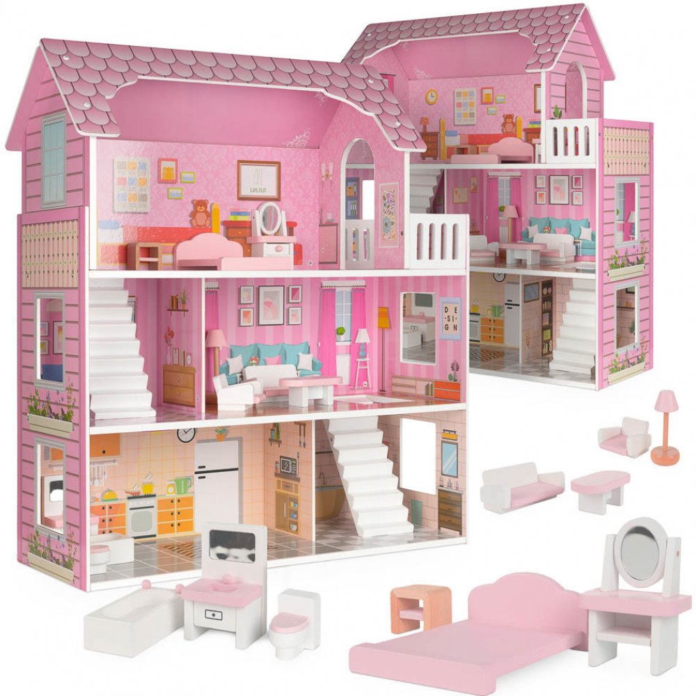 Všechny stěny a střecha domečku jsou v holčičí oblíbené barvě - růžové! Vnitřní stěny mají navíc grafiku s četnými kusy nábytku a dekorací nezbytných v každém domě.