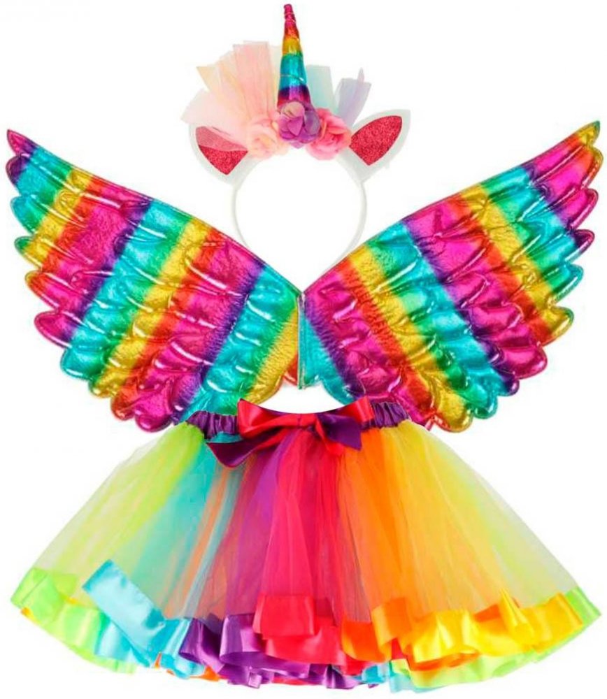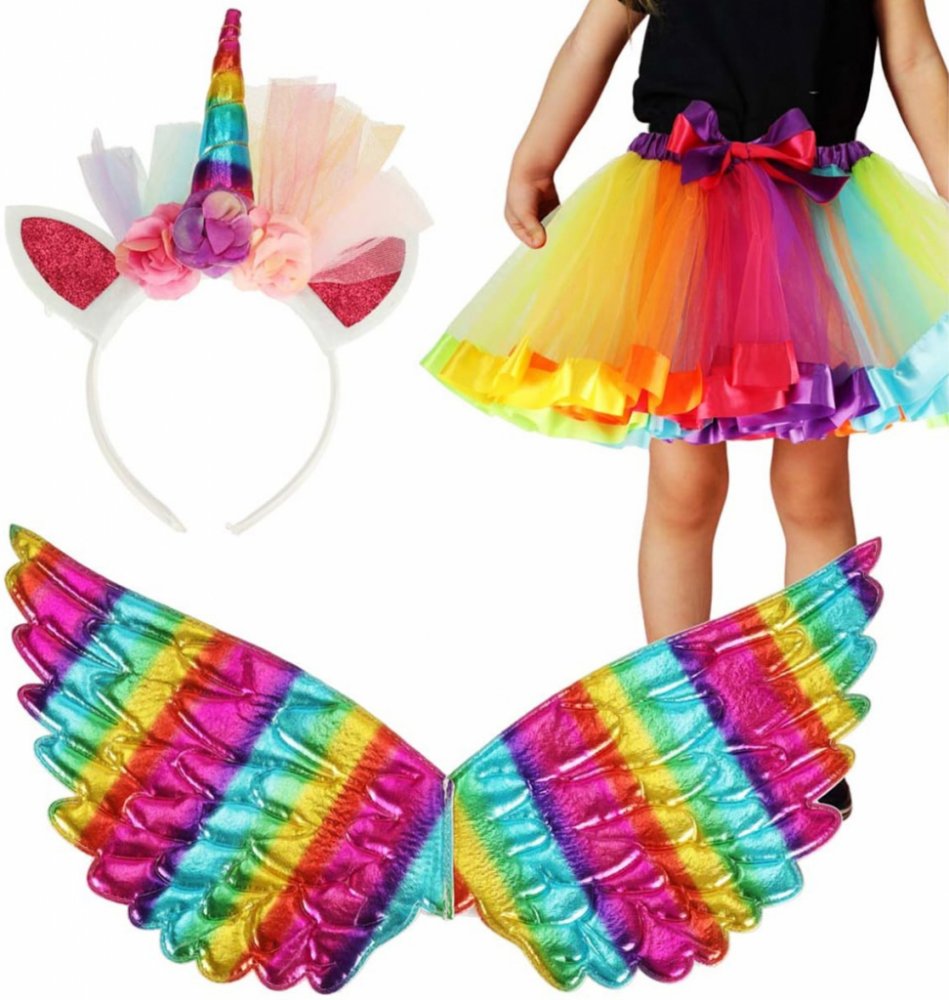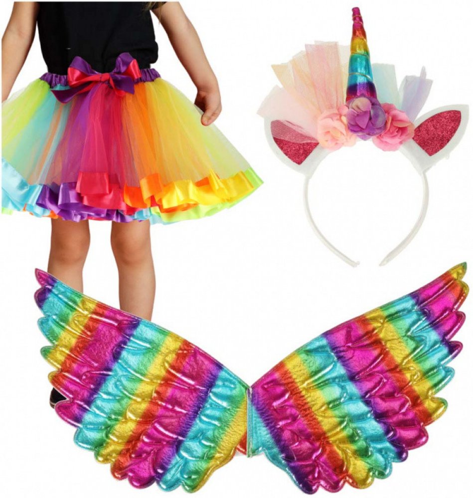 KIK jednorožce duhový sukně čelenka křídla KX4434