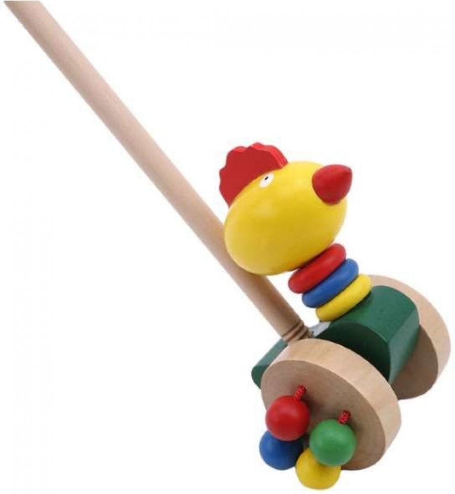 Dřevěné zvířátko na tyči bude zábavnou hračkou pro ty nejmenší! Fantastická hračka určená pro děti, které začínají chodit. Hračka je vybavena 2 velkými koly. Na kolečkách jsou připevněny 4 barevné korálky, které při jízdě chrastí. Vlastnosti: Materiál: dřevo Doporučený věk: 2 + Délka tyče: 46 cm Rozměry: 8 cm x 6,5 cm x 11,5 cm