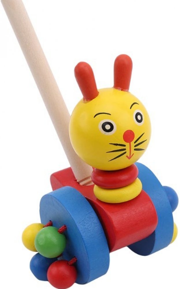 Dřevěné zvířátko na tyči bude zábavnou hračkou pro ty nejmenší! Fantastická hračka určená pro děti, které začínají chodit. Hračka je vybavena 2 velkými koly. Na kolečkách jsou připevněny 4 barevné korálky, které při jízdě chrastí. Vlastnosti: Materiál: dřevo Doporučený věk: 2 + Délka tyče: 46 cm Rozměry: 8 cm x 6,5 cm x 11,5 cm