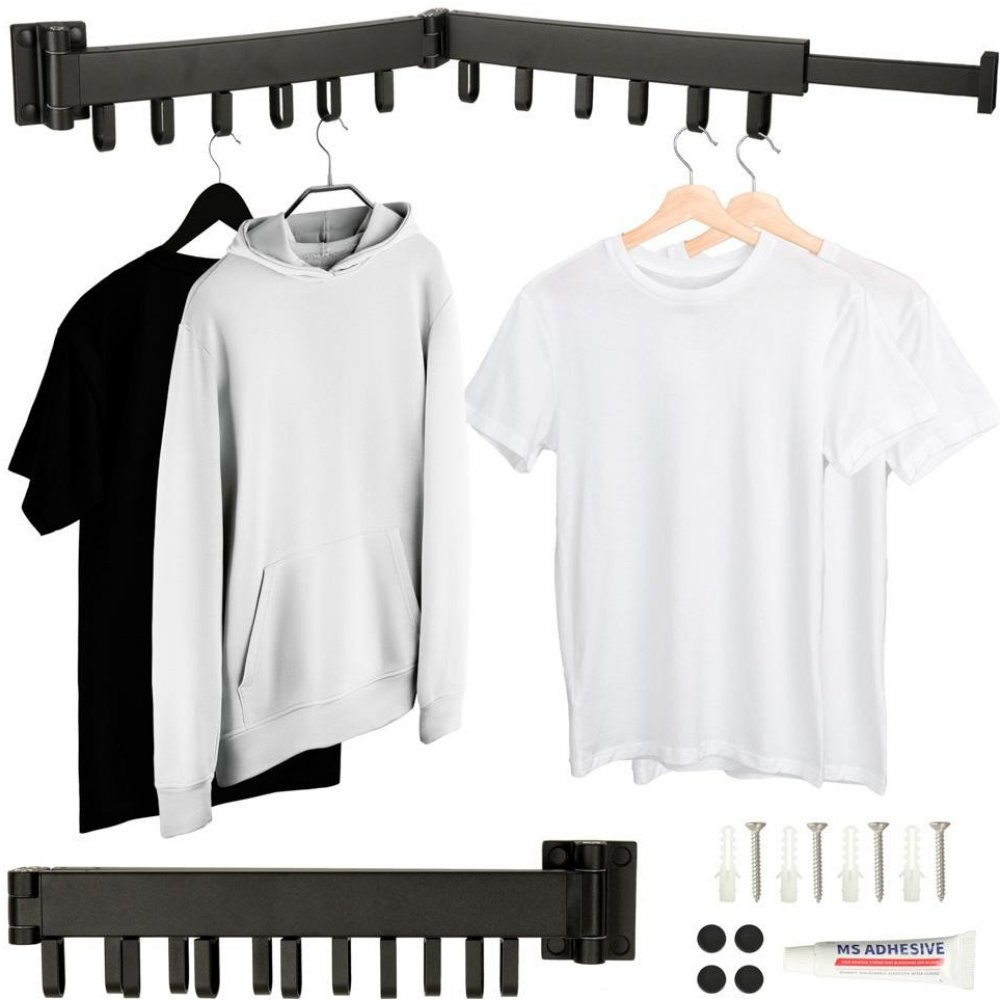 Stylový a praktický černý teleskopický sušák na prádlo, který lze snadno připevnit na stěnu. Ideální pro efektivní a prostorově úsporné sušení prádla ve vašem domově. Perfektní volba pro moderní domácnosti.
