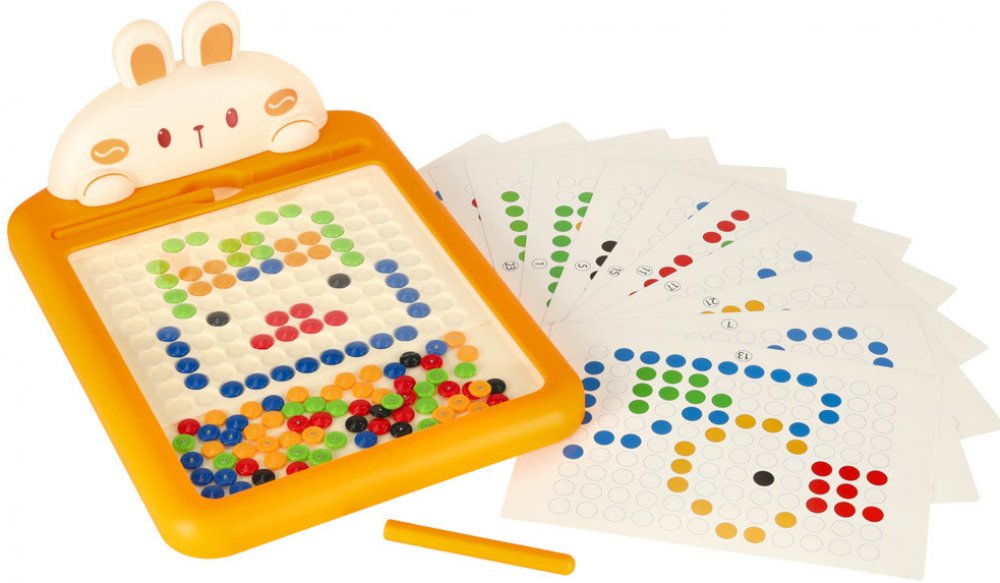 V desce je uzavřeno sto osmnáct magnetických tlačítek a k uspořádání obrázků musí dítě použít magnetické pero ze sady.