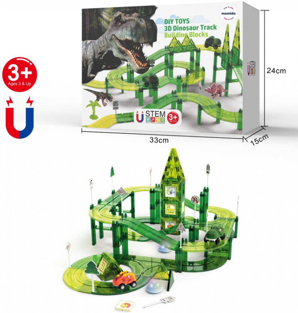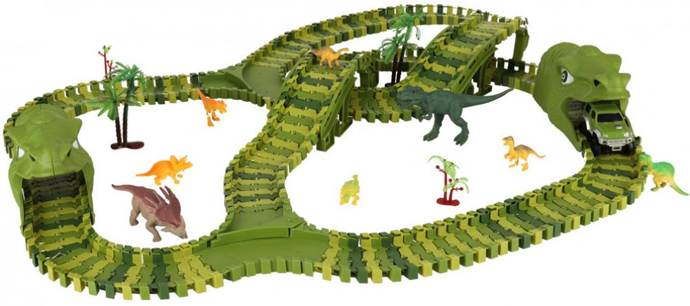 Darujte svým dětem neomezené možnosti hraní a nechte je prozkoumat fascinující svět dinosaurů s touto úžasnou závodní dráhou!