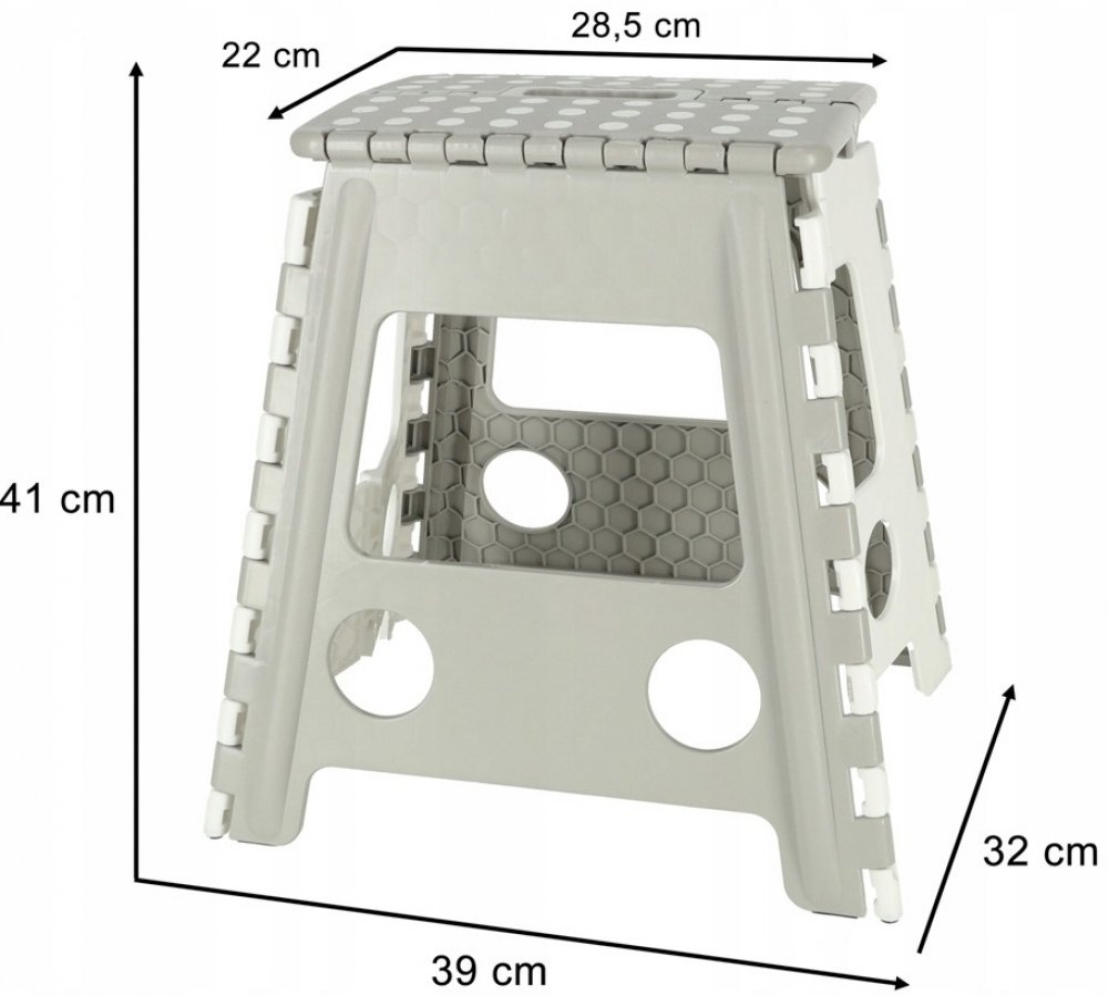 Plně skládací stolička, velmi snadná na přepravu a skladování. Výrobek je vybaven protiskluzovou vrstvou, díky které je použití bezpečnější. Plošinu využijete k dosažení vysoké police, natírání stropu při renovaci, zavěšení lustru nebo zavěšení závěsů. Výrobek je také perfektní jako platforma pro děti - například k dosažení umyvadla.