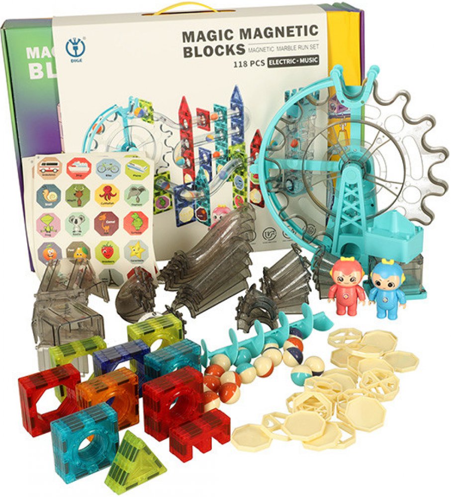MAGNETICKÉ BLOKY MRAMOROVÁ KULIČKOVÁ DRÁHA SE ZVUKEM HUDBA 118 PRVKŮ