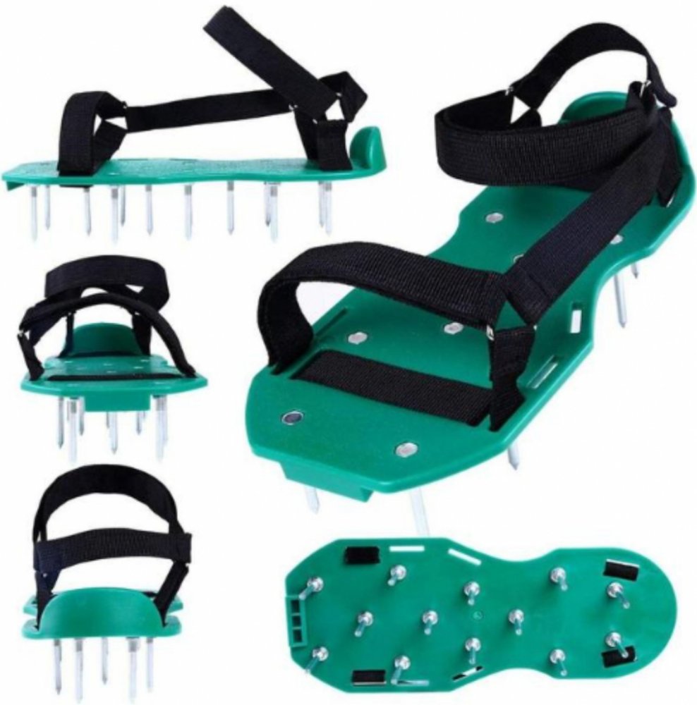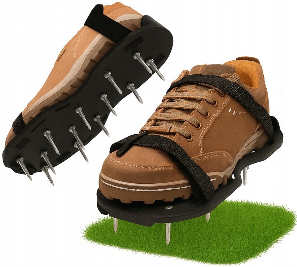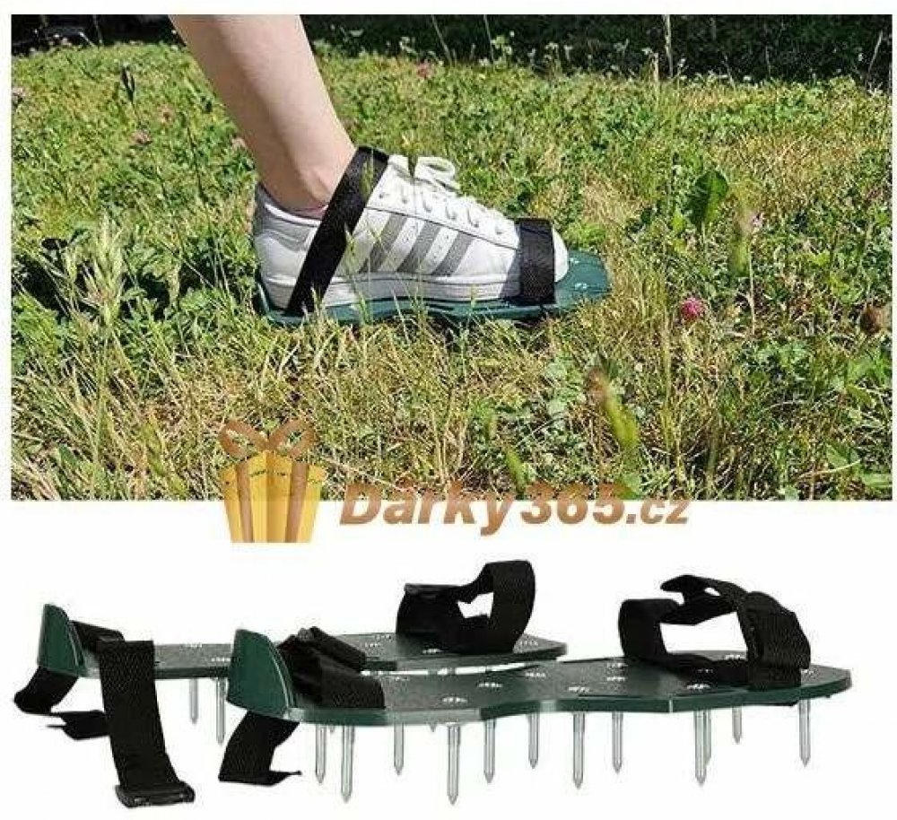 Provzdušňovač s botkami je zařízení, které zlepšuje propichování trávníku. Jednoduše nasaďte nástavce na podrážky bot a připněte řemínky k sobě tak, aby vše co nejlépe přiléhalo. A pak už stačí jen chodit po trávníku.