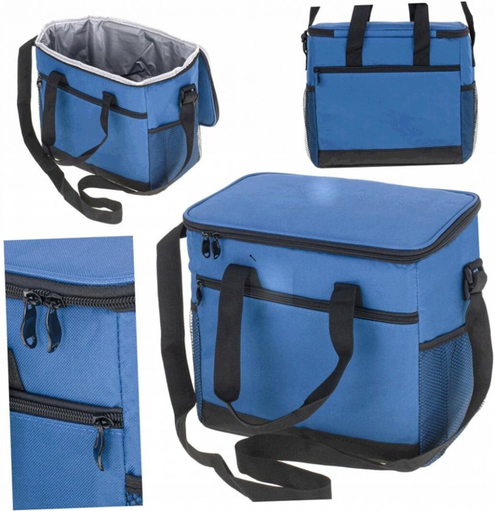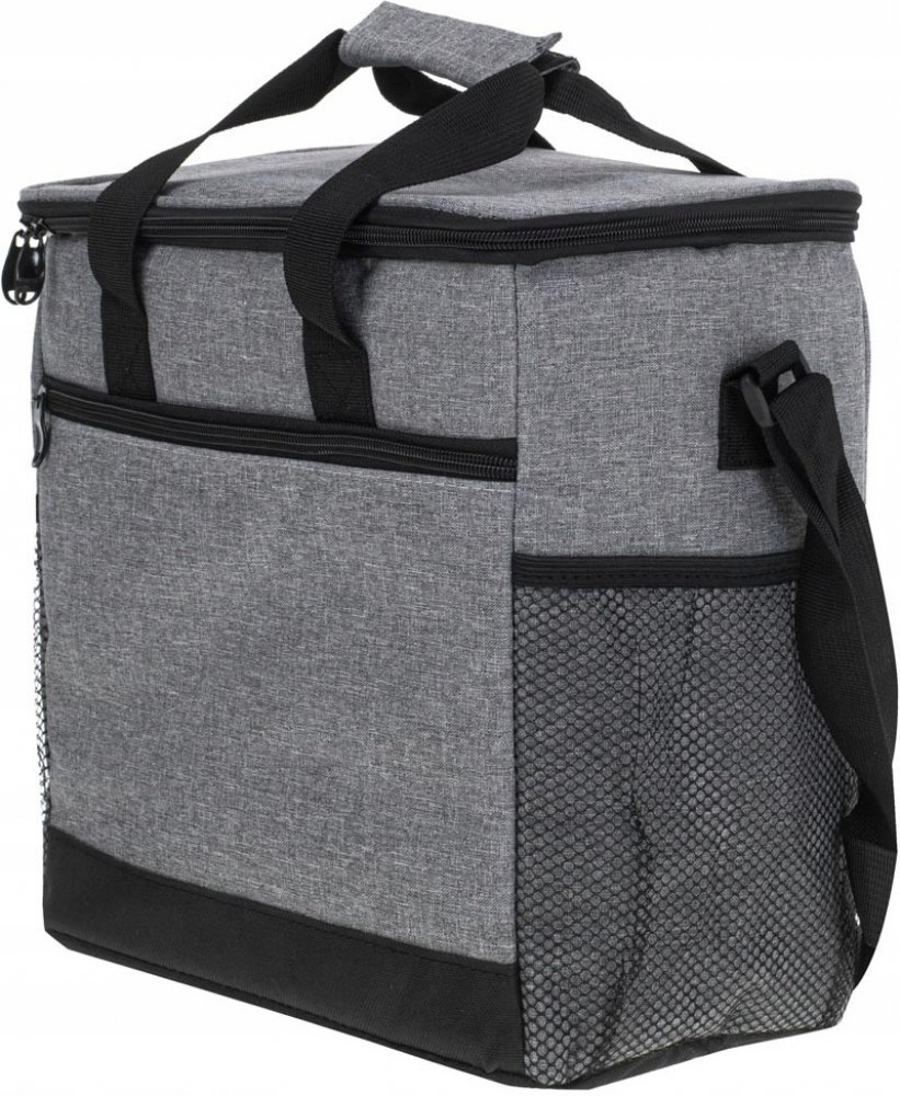 Kromě velké hlavní přihrádky má taška dvě síťované kapsy po stranách a menší kapsu na zip na přední straně. Ta poskytuje další prostor pro veškeré potřebné příslušenství, jako jsou talíře, šálky nebo jiné předměty. Vnitřek tašky je vyložen termoizolační fólií, která v kombinaci s chladicí vložkou zajišťuje, že teplota uložených produktů zůstane stejná po několik hodin. Objem: 16 litrů Materiál: polyester Rozměr: taška 31 x 18 x 27 cm, popruh 120 cm, balení 43 x 33 x 5 cm